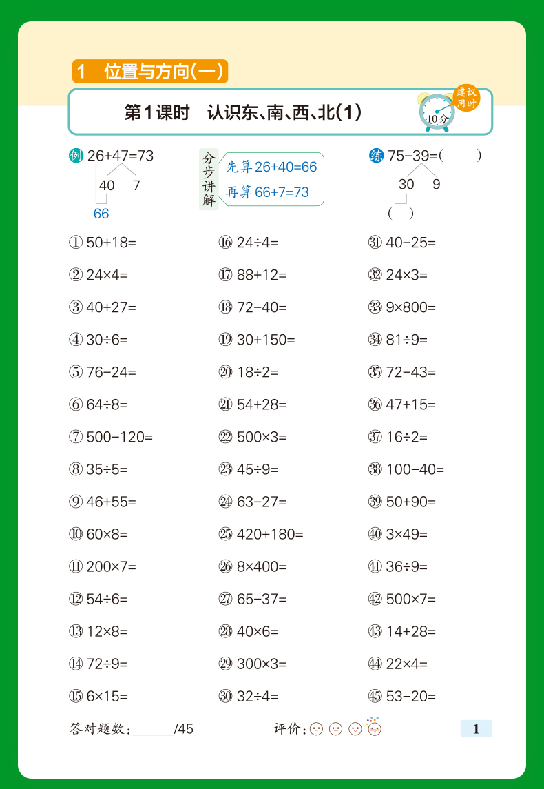 2023年春 小学学霸口算数学三年级下册 人教版 pass绿卡