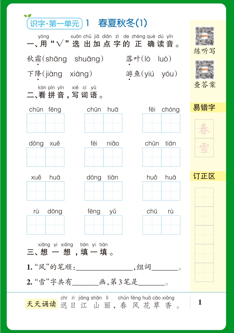 首页> 小学教辅> 一年级> 语文> pass绿卡小学学霸天天默写一年级下册人教版