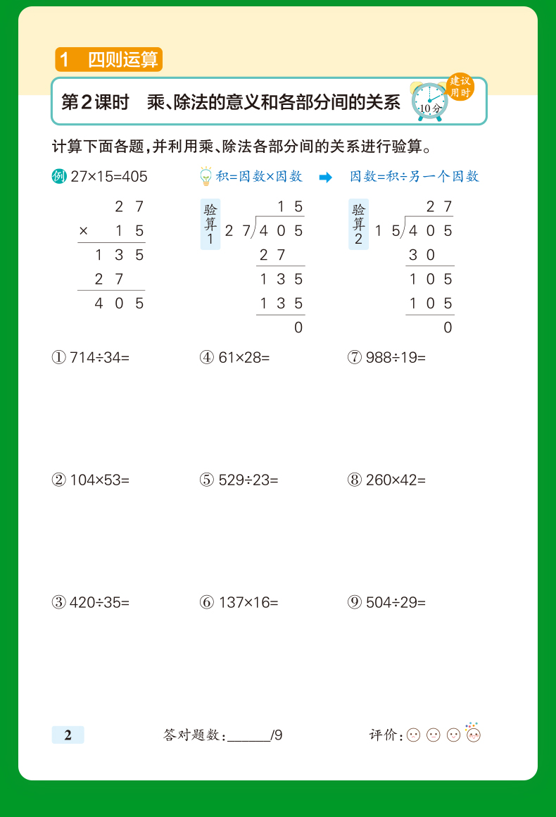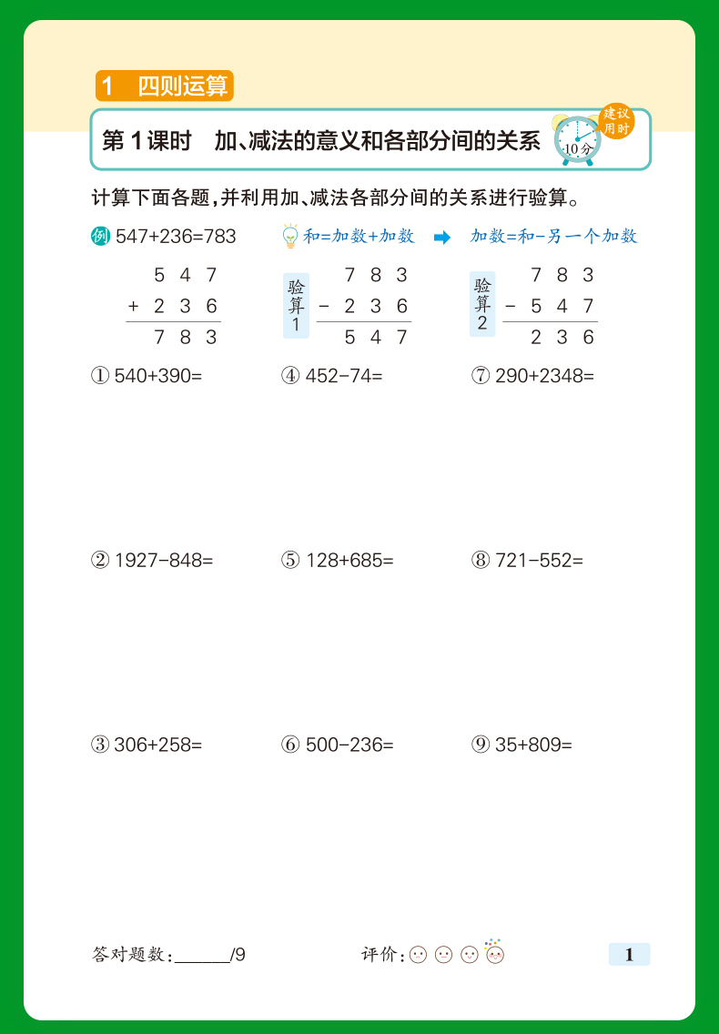 2023年春 小学学霸口算数学四年级下册 人教版 pass绿卡