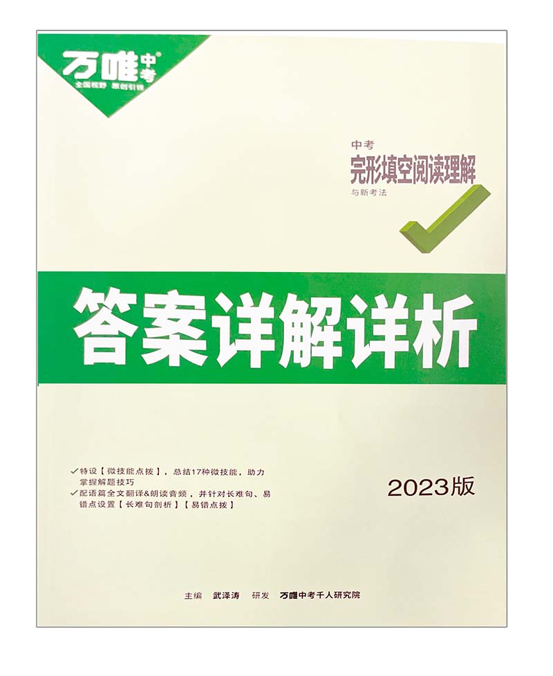 首页> 初中教辅> 中考> 英语> 2023版中考英语完形填空阅读理解提升版专项训练