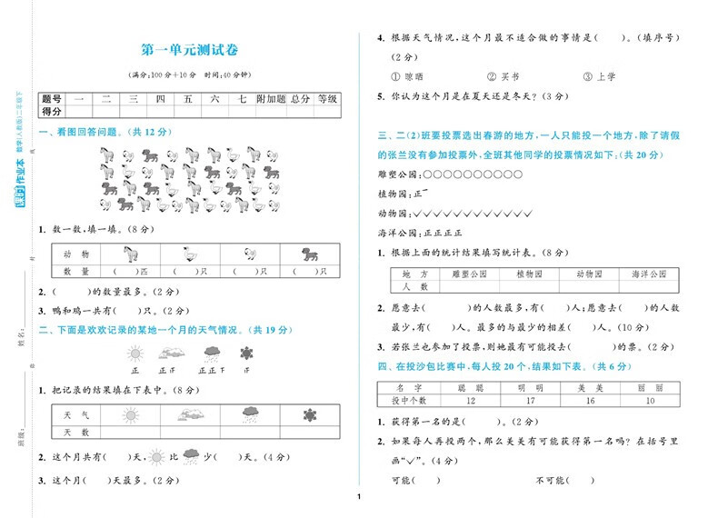 2023春 通成学典 课时作业本二年级数学下册 人教版