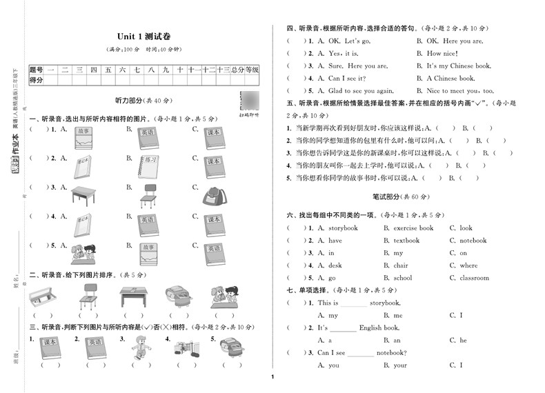 2023春 通成学典 课时作业本三年级英语下册 人教版