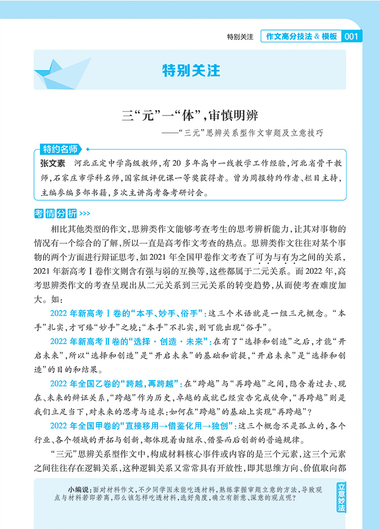 2023版天星教育 试题调研 高考语文 作文高分技法&模板