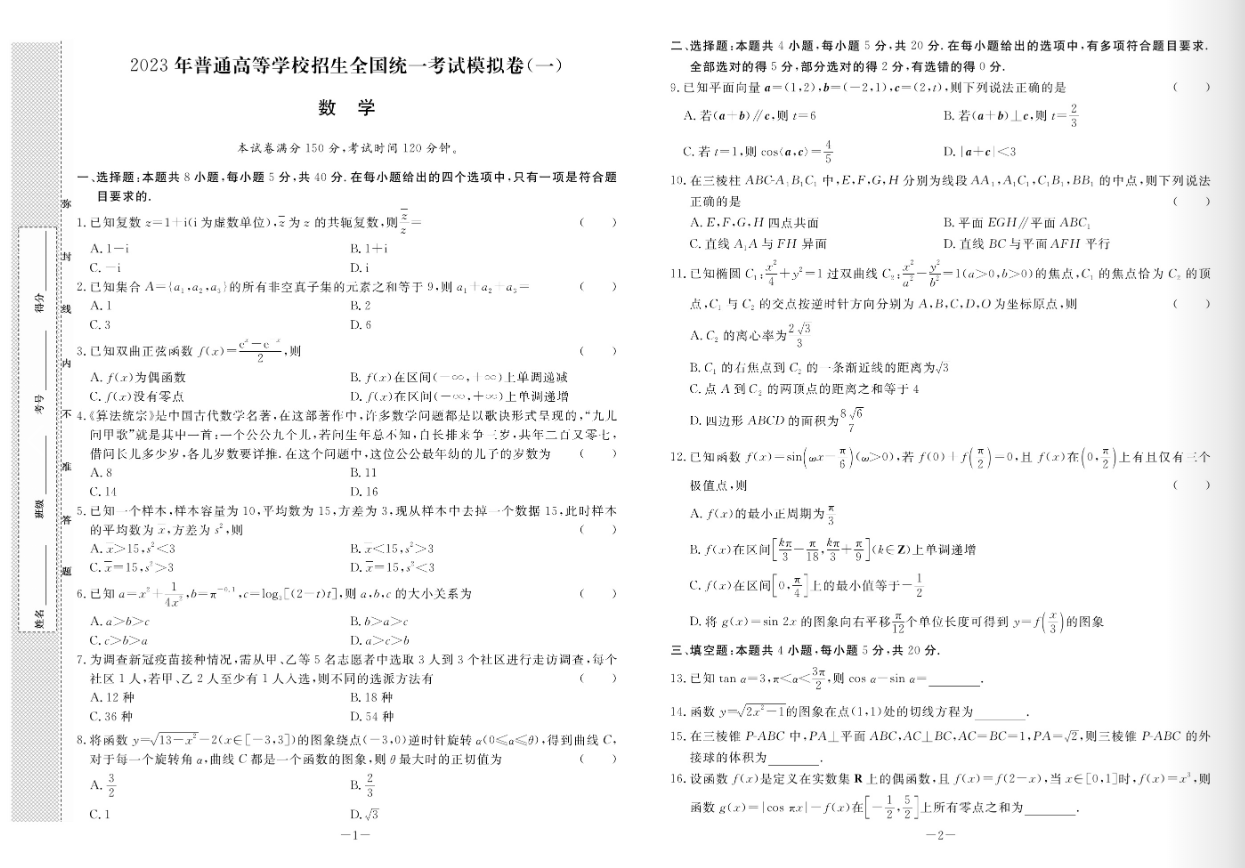 新高考-高考前沿-高考仿真模拟12套卷- 数学