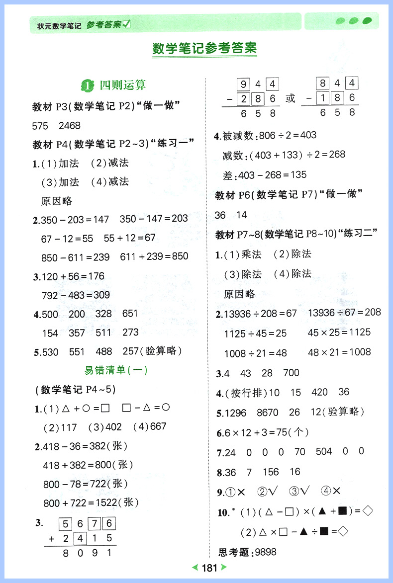 首页> 小学教辅> 四年级> 数学> 2023版 状元数学笔记四年级数学下册 人教版
