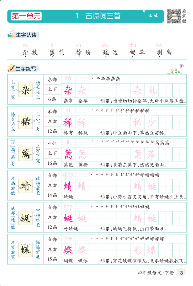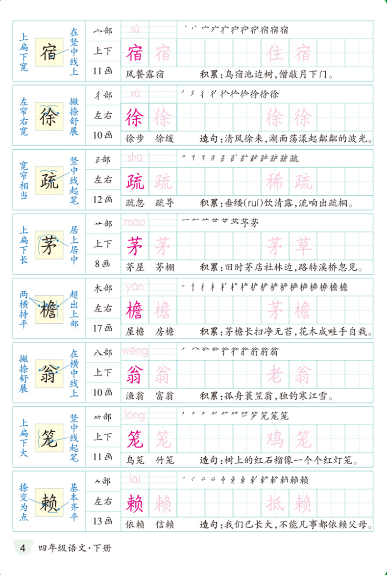 2023春 小学学霸天天写字语文四年级下册人教版 pass绿卡