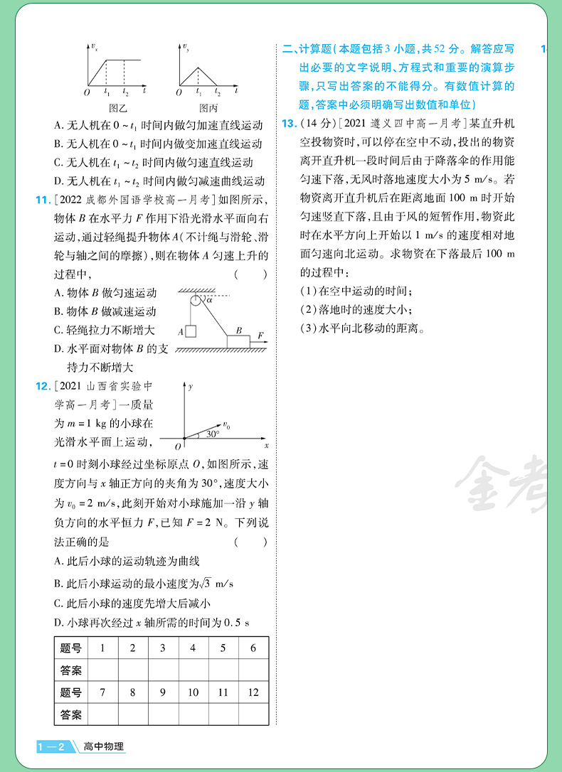 2023版 金考卷 活页题选 高中物理 必修第二册 人教版