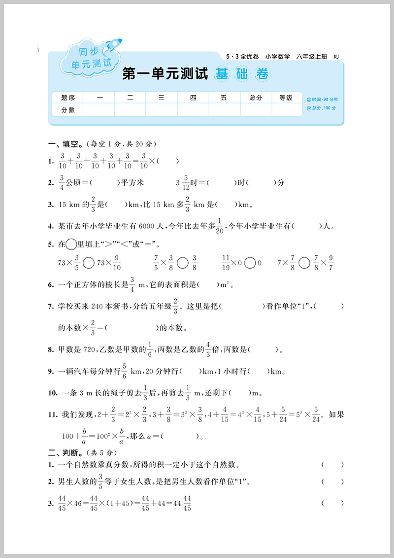 首页> 小学教辅> 六年级> 数学> 5.3全优卷六年级数学上册