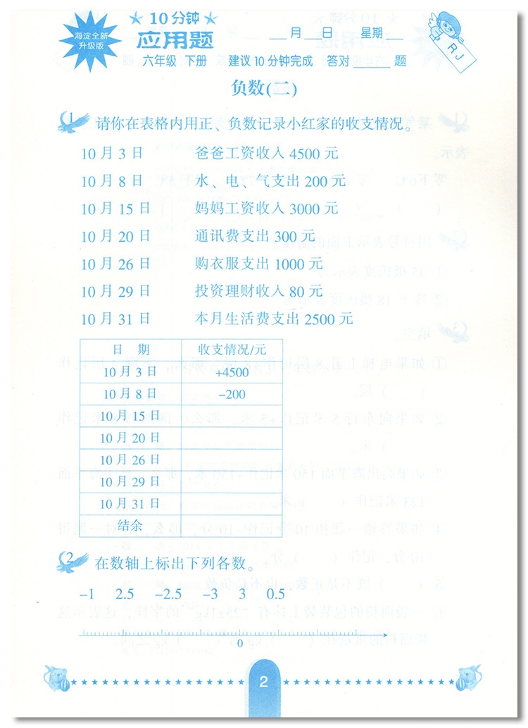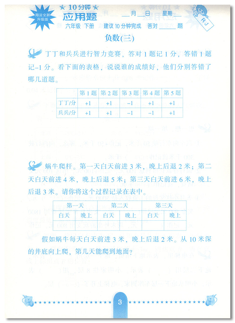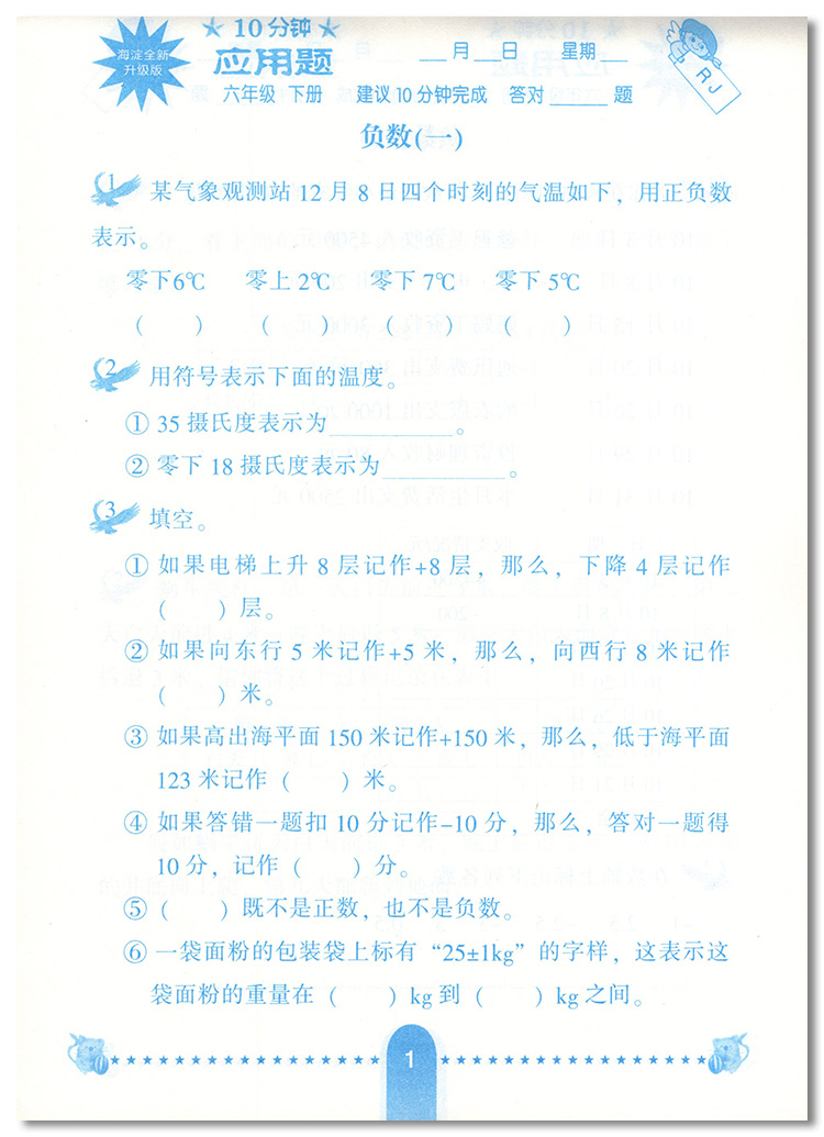 小学生10分钟应用题 六年级下册数学天天练 人教版