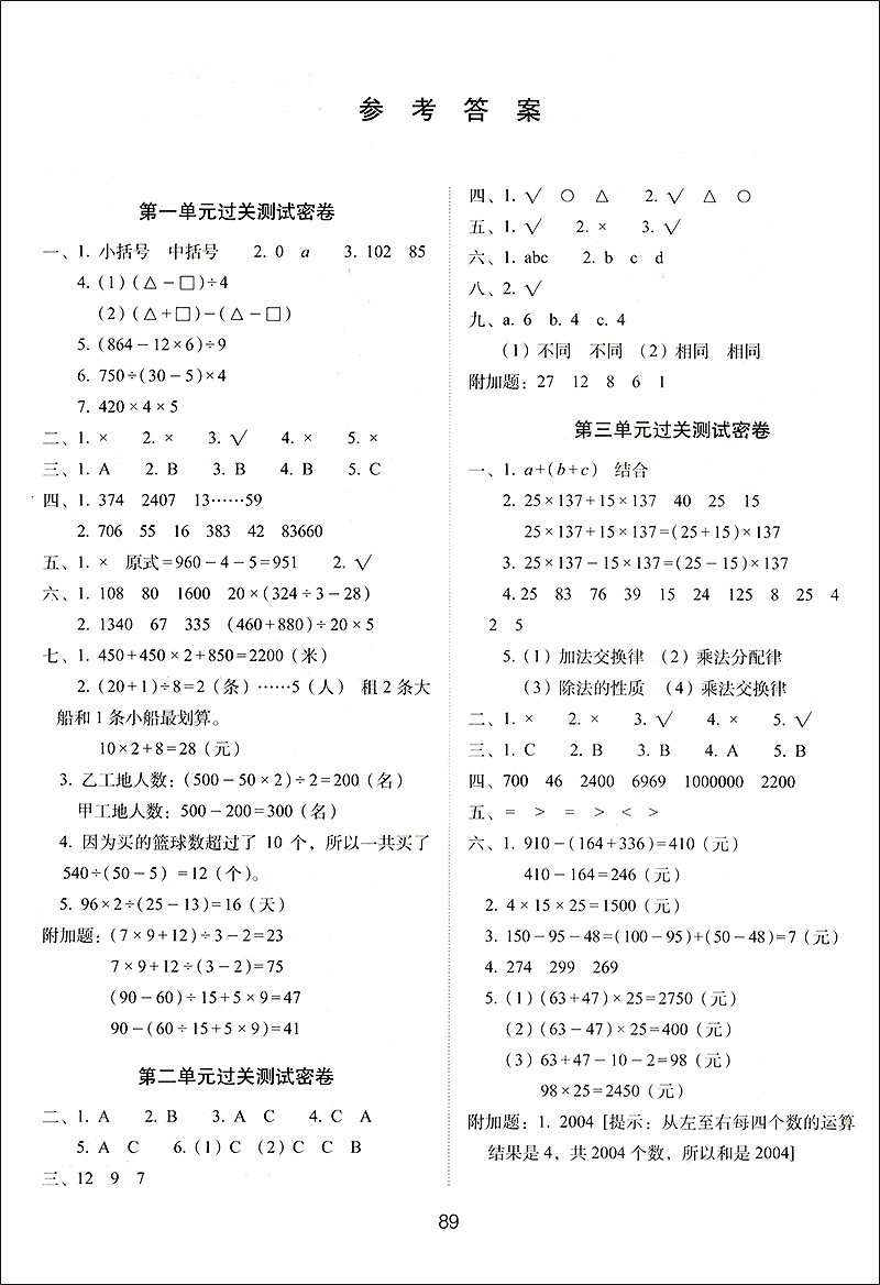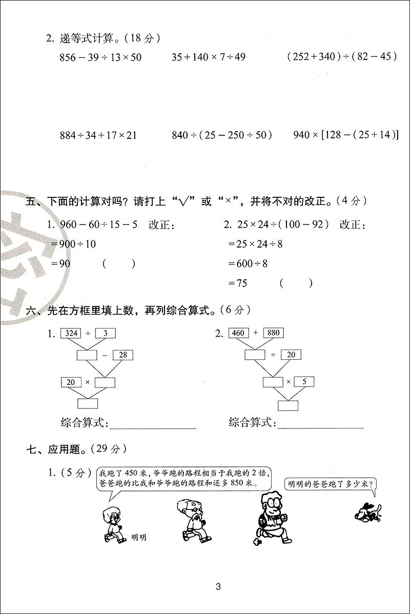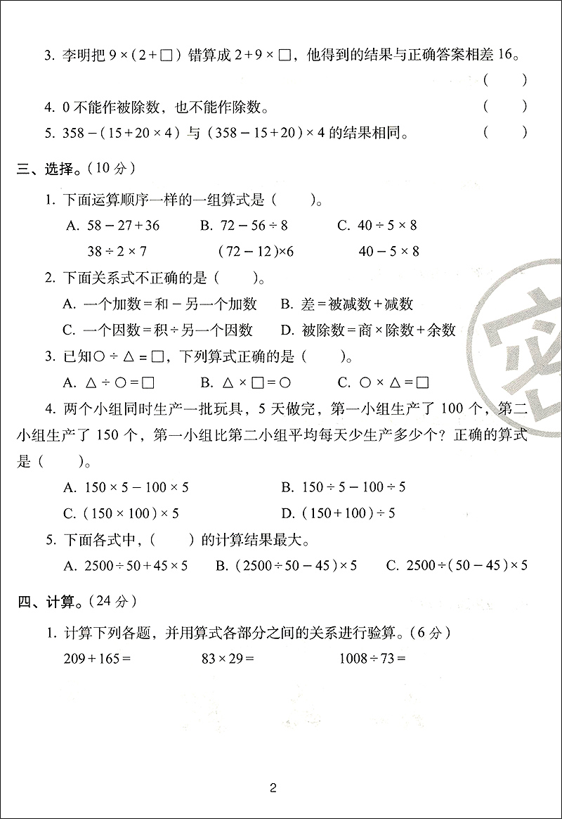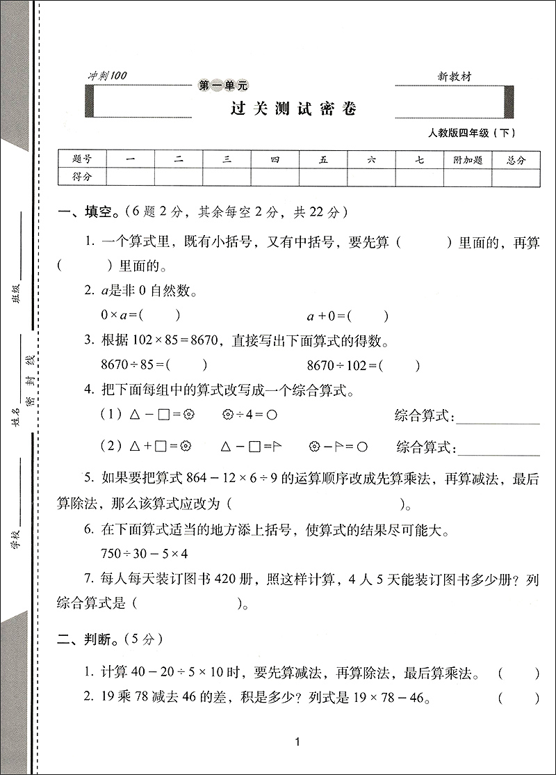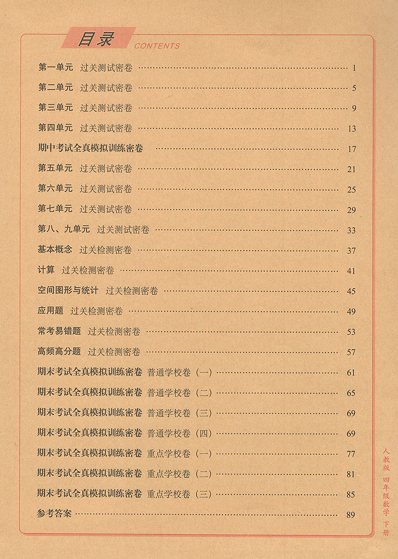 2023春 期末冲刺100分数学 四年级下册 人教版