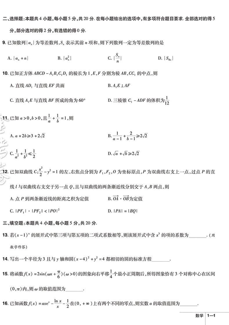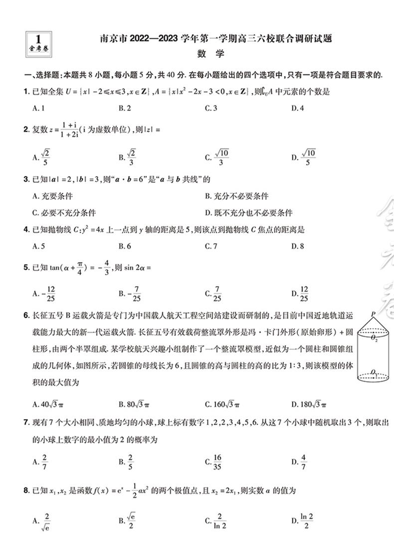 2023版天星教育 金考卷特快专递 第5期 数学(大市联考卷)