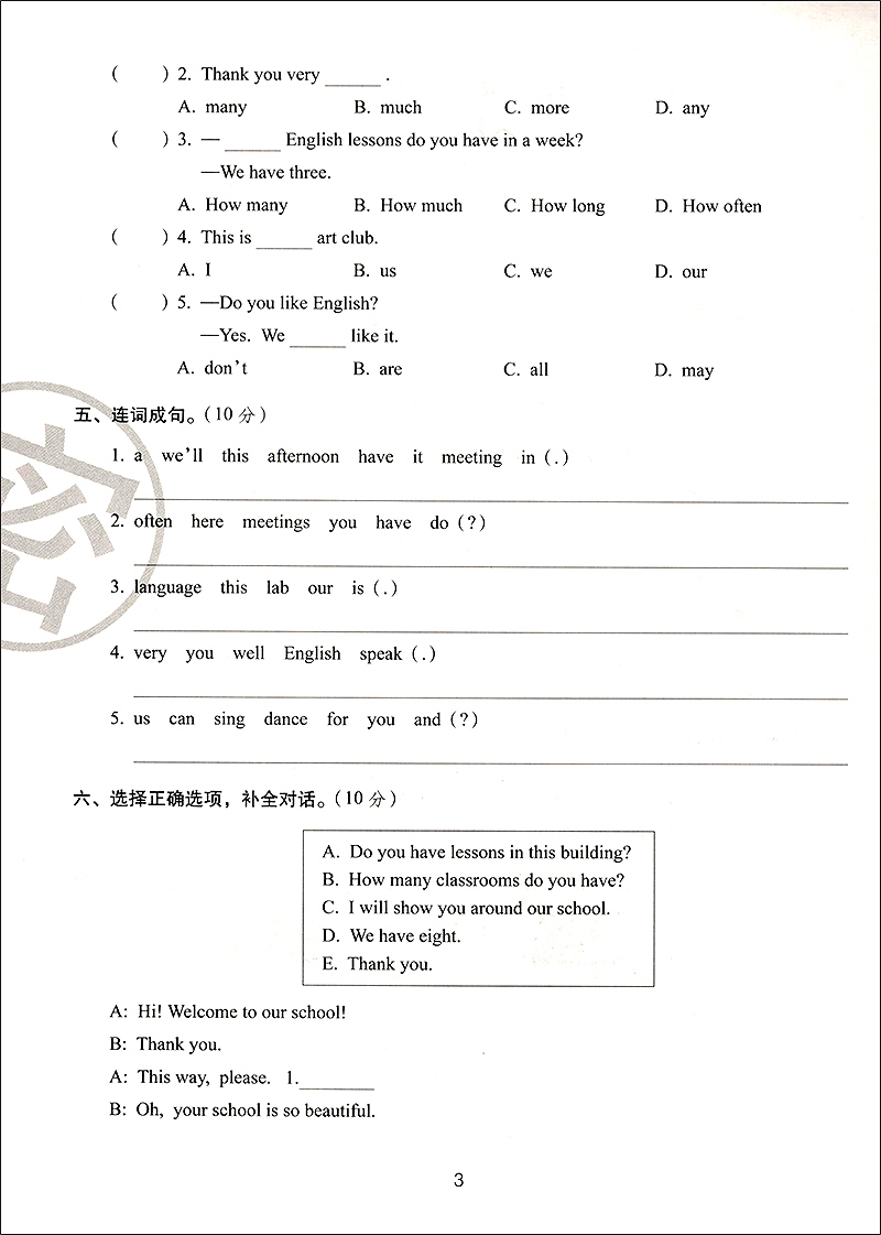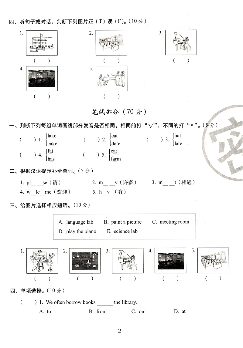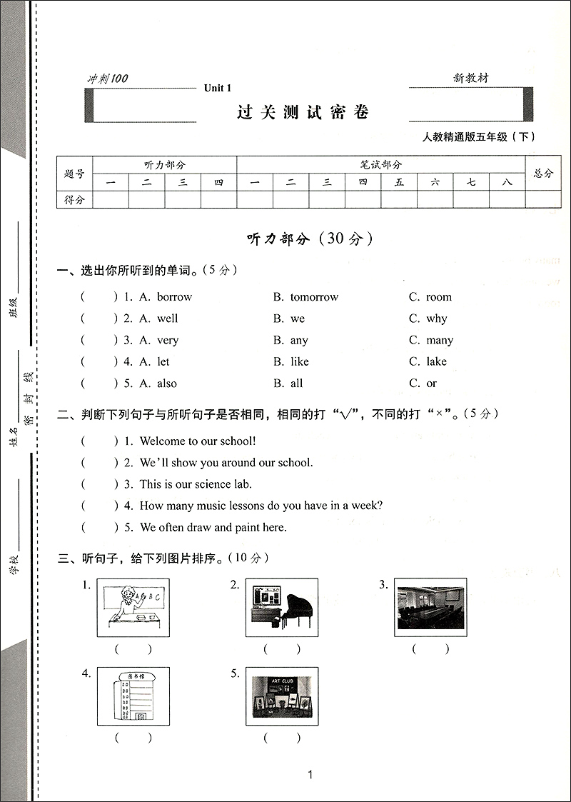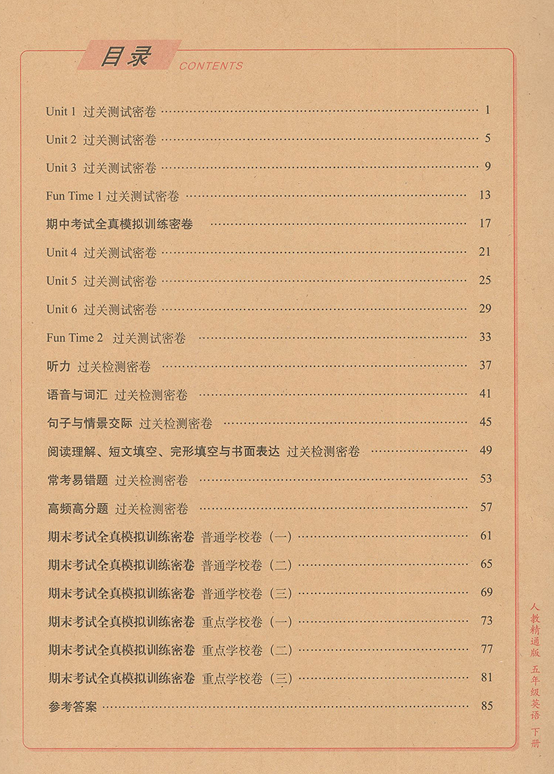 2023春 期末冲刺100分英语 五年级下册 人教精通版