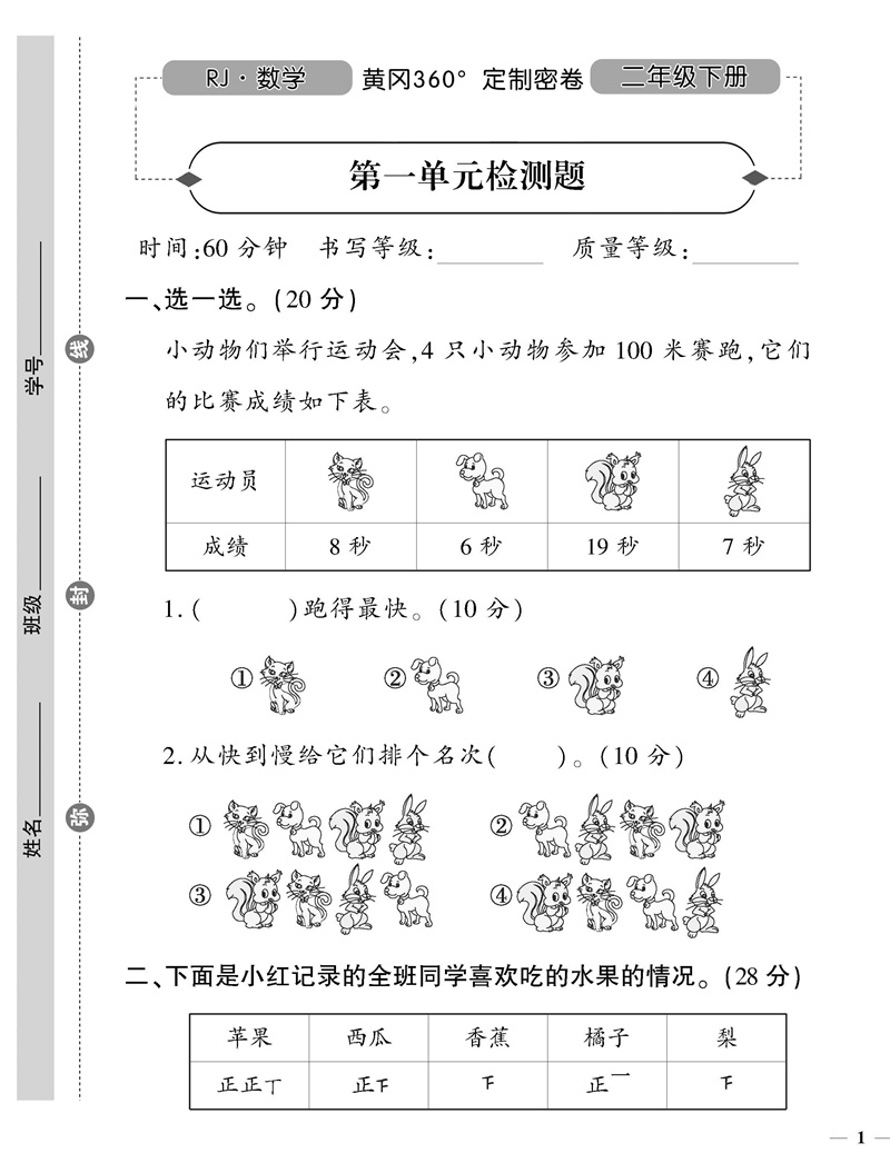 首页> 小学教辅> 二年级> 数学> 黄冈360定制密卷二年级下册数学人教版
