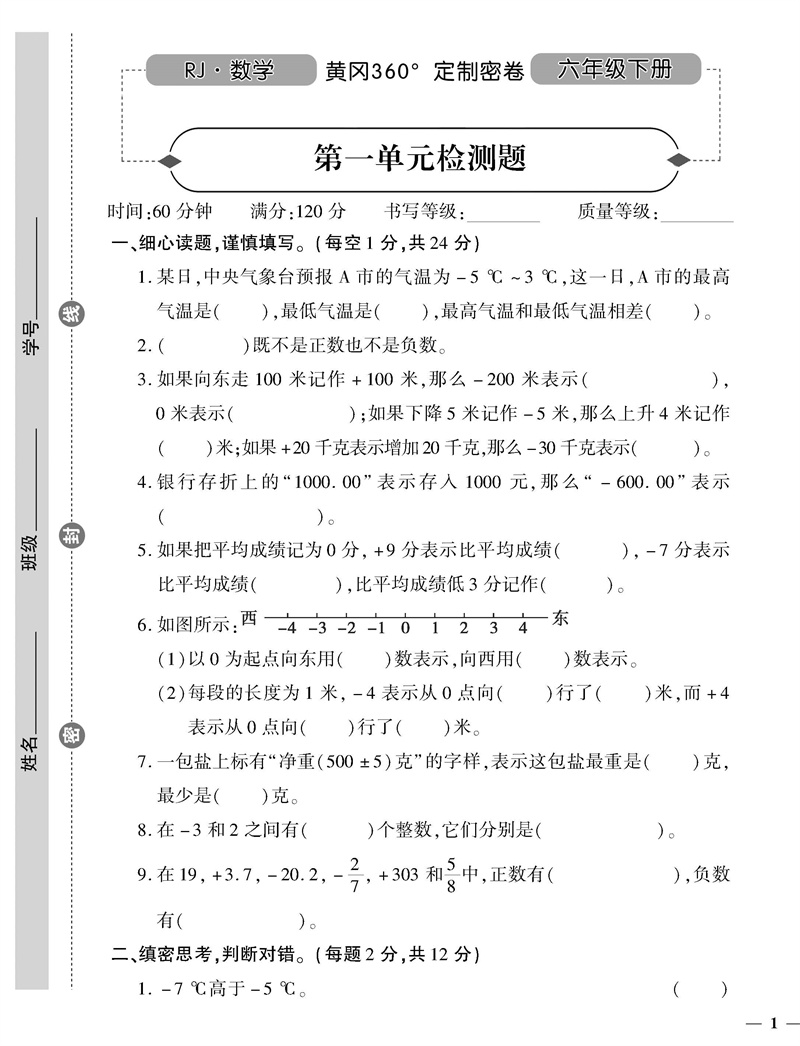 首页> 小学教辅> 六年级> 数学> 黄冈360定制密卷六年级数学下册人教版