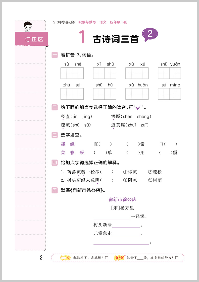 曲一线2023版 53小学基础练积累与默写 四年级语文下