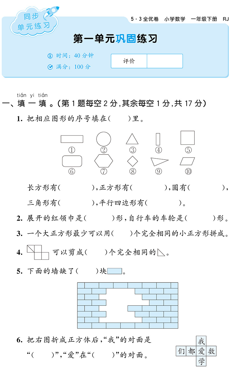 2023春季 53全优卷 小学数学 一年级下册 RJ 人教版