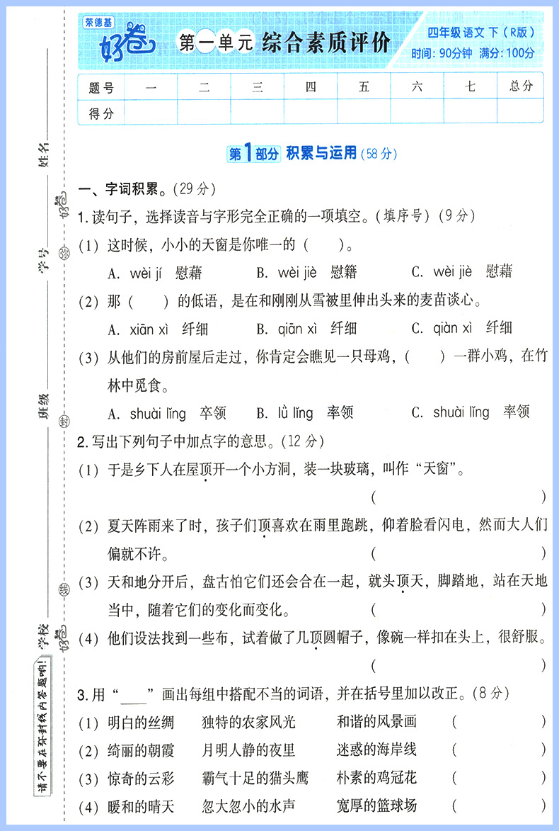 2023 荣德基好卷 四年级下册语文 人教版