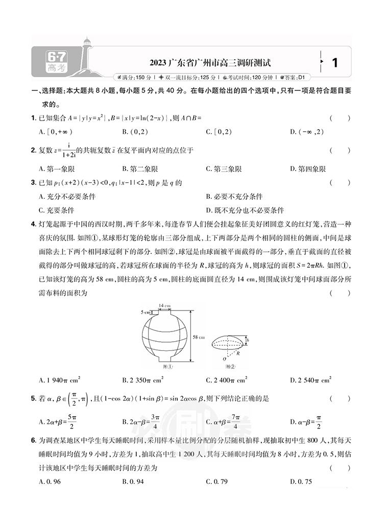首页> 高中教辅> 高三年级> 数学> 2023高考必刷卷 专题强化卷 高三冲刺 12套模拟汇编 数学
