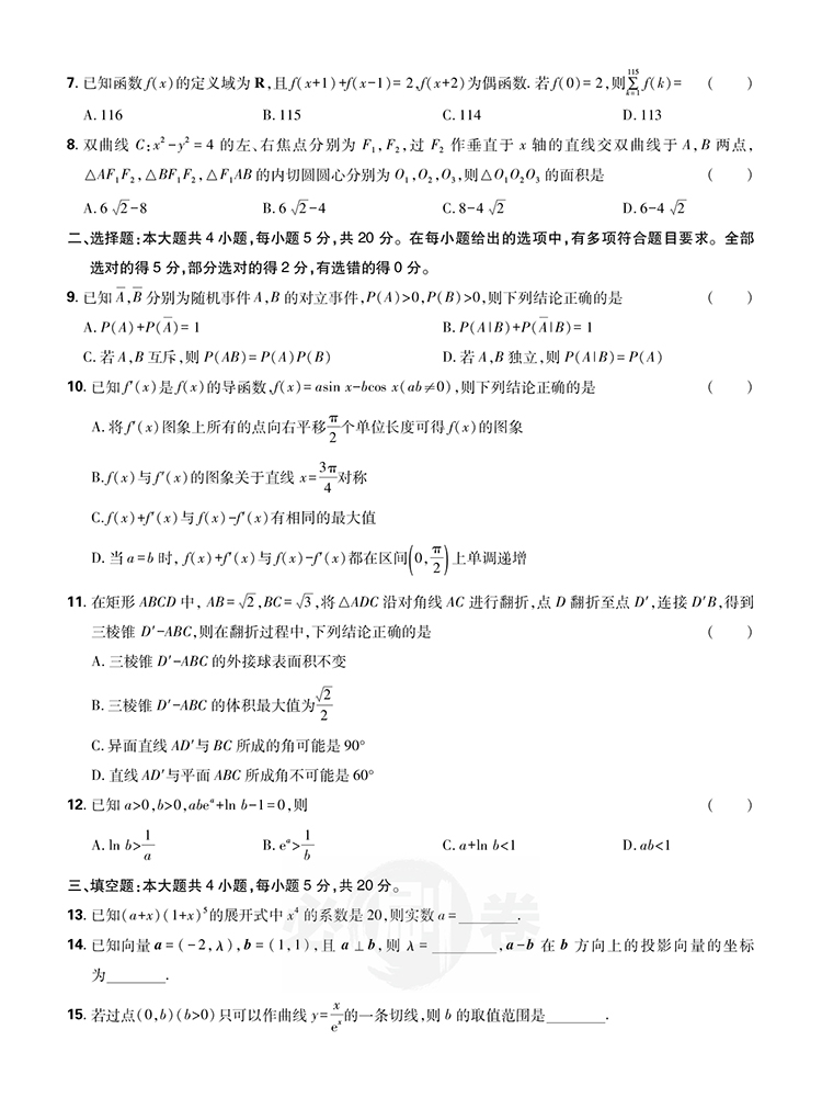 2023高考必刷卷 专题强化卷 高三冲刺 12套模拟汇编 数学