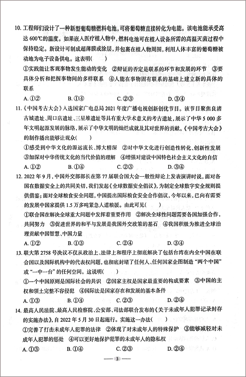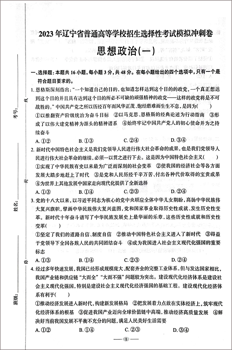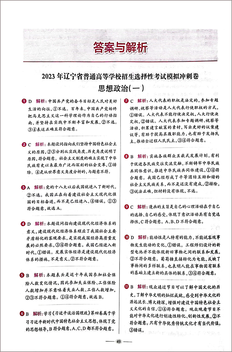 2023辽宁专版模拟冲刺卷 新高考这样考 思想政治 把关卷