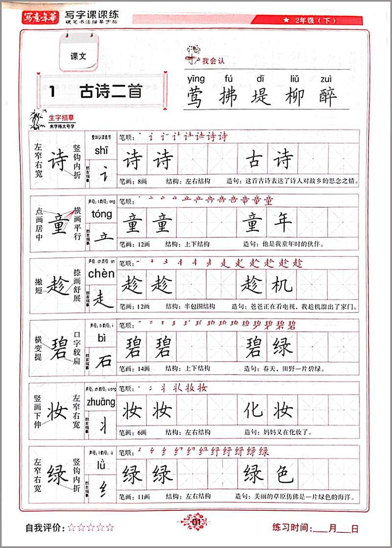 首页> 小学教辅> 二年级> 语文> 写字课课练二年级语文下册