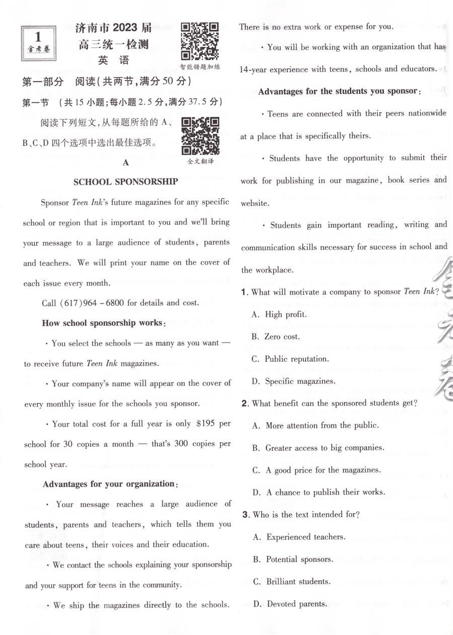 首页> 高中教辅> 高三年级> 英语> 2023版天星教育 金考卷特快专递 第6期 英语