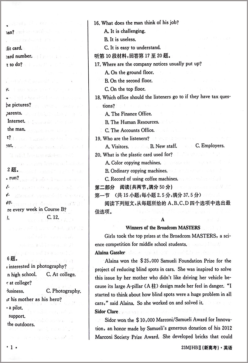 2023版金卷名卷汇编II 英语
