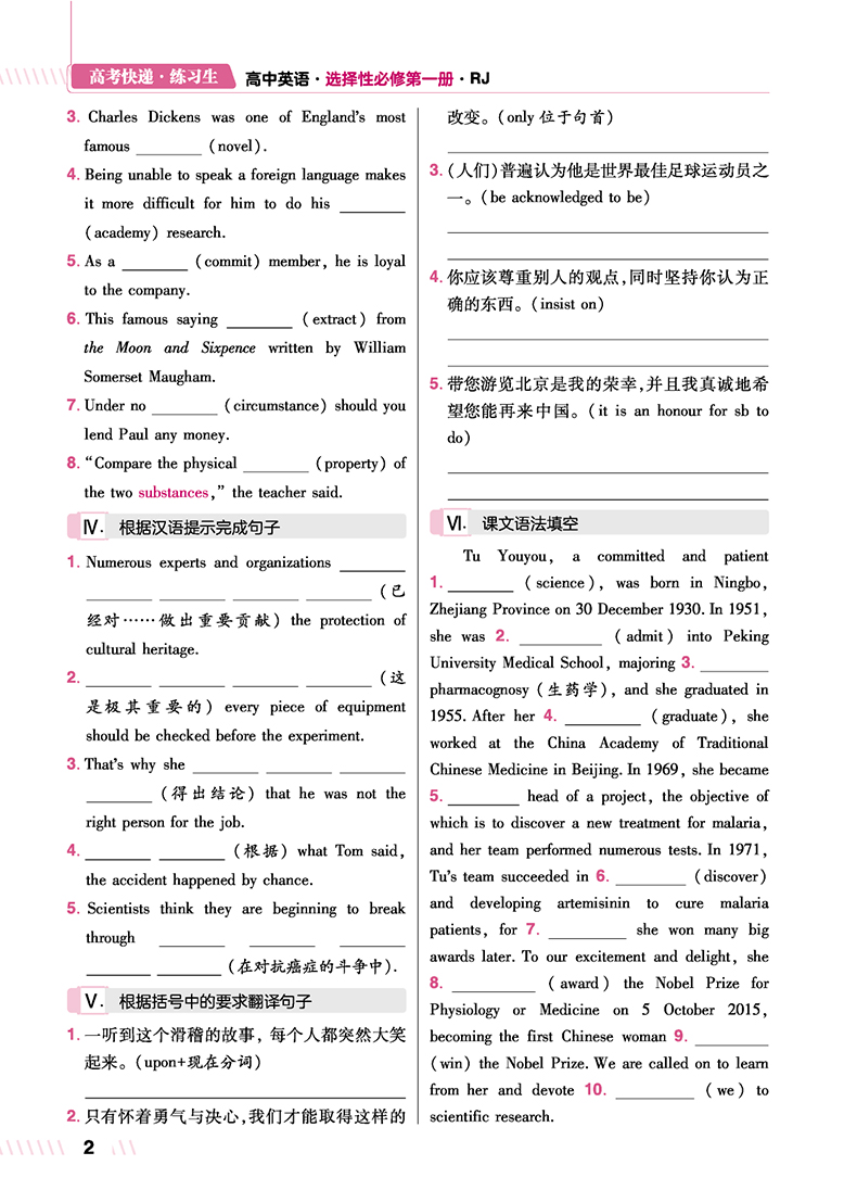 2023版 练习生高中英语选择性必修第一册 RJ版