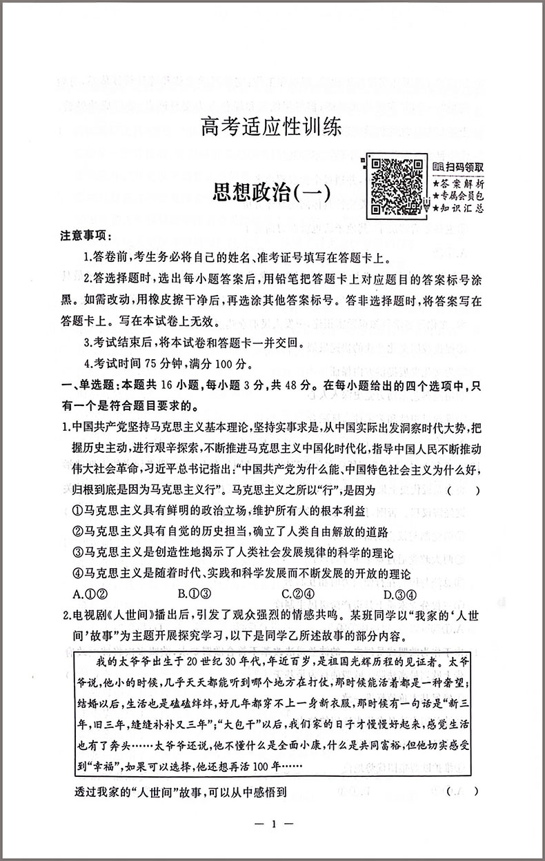 2023版 高考复习考典 高考适应性训练考典 思想政治