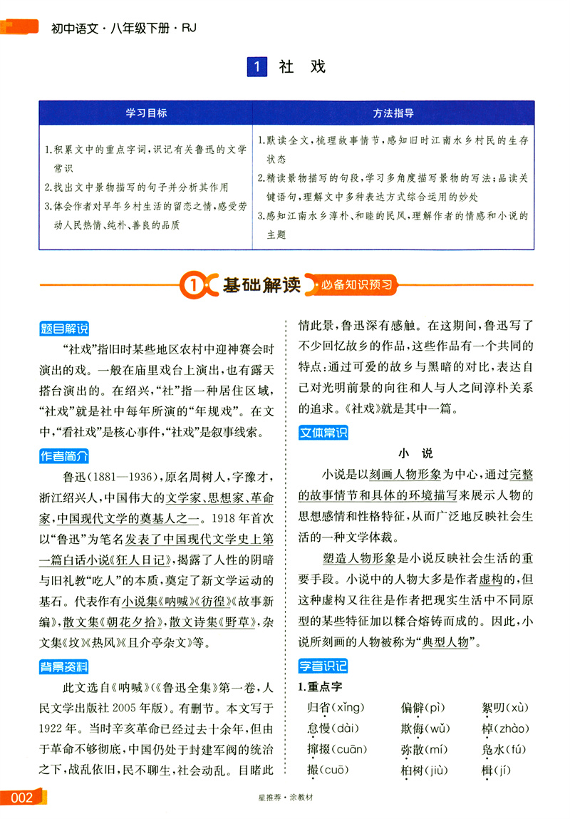 2023春 星推荐涂教材 八年级语文下册 人教版