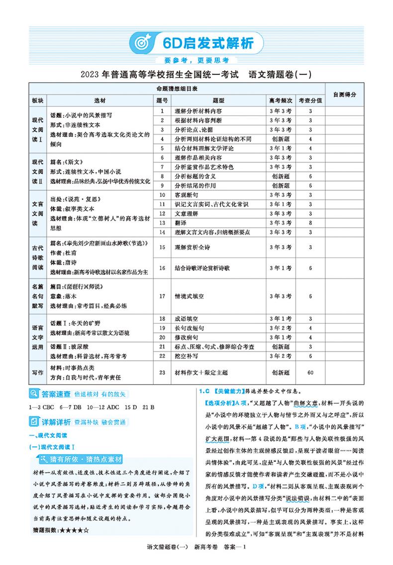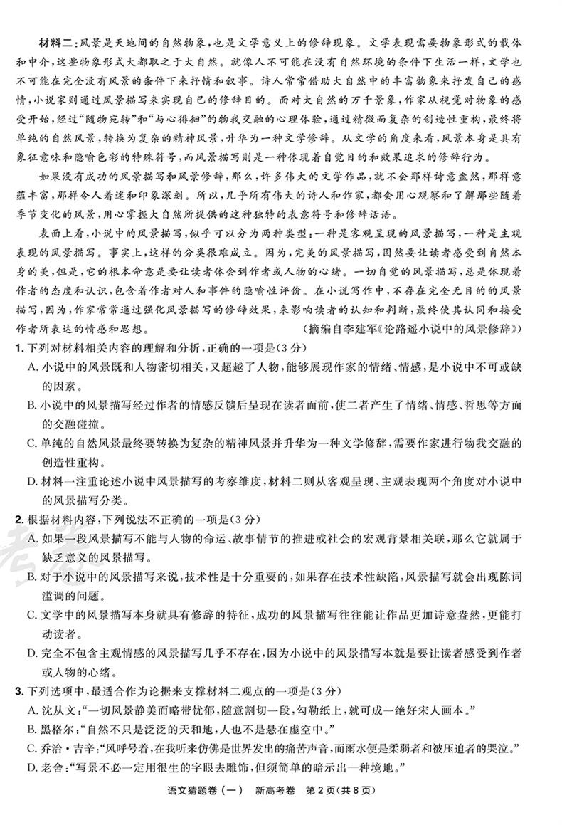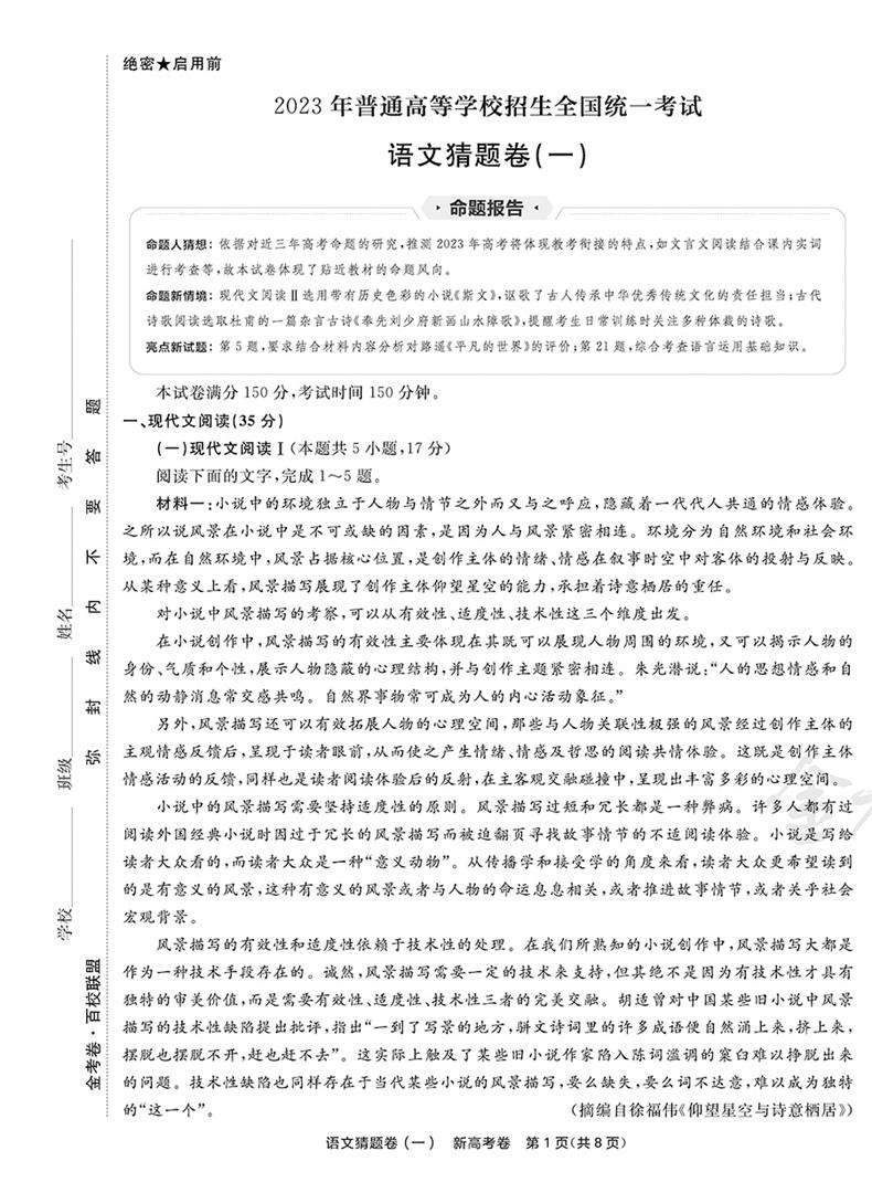 2023版天星教育 新高考测评卷 语文