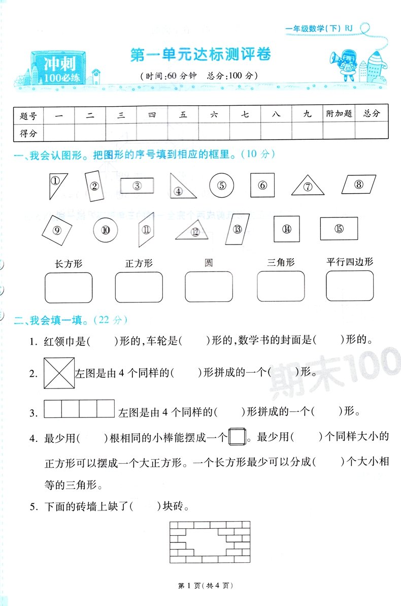 2023万向思维 期末100分冲刺卷 数学一年级下册 人教版