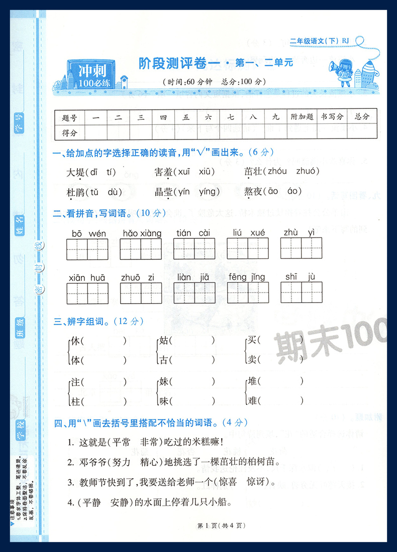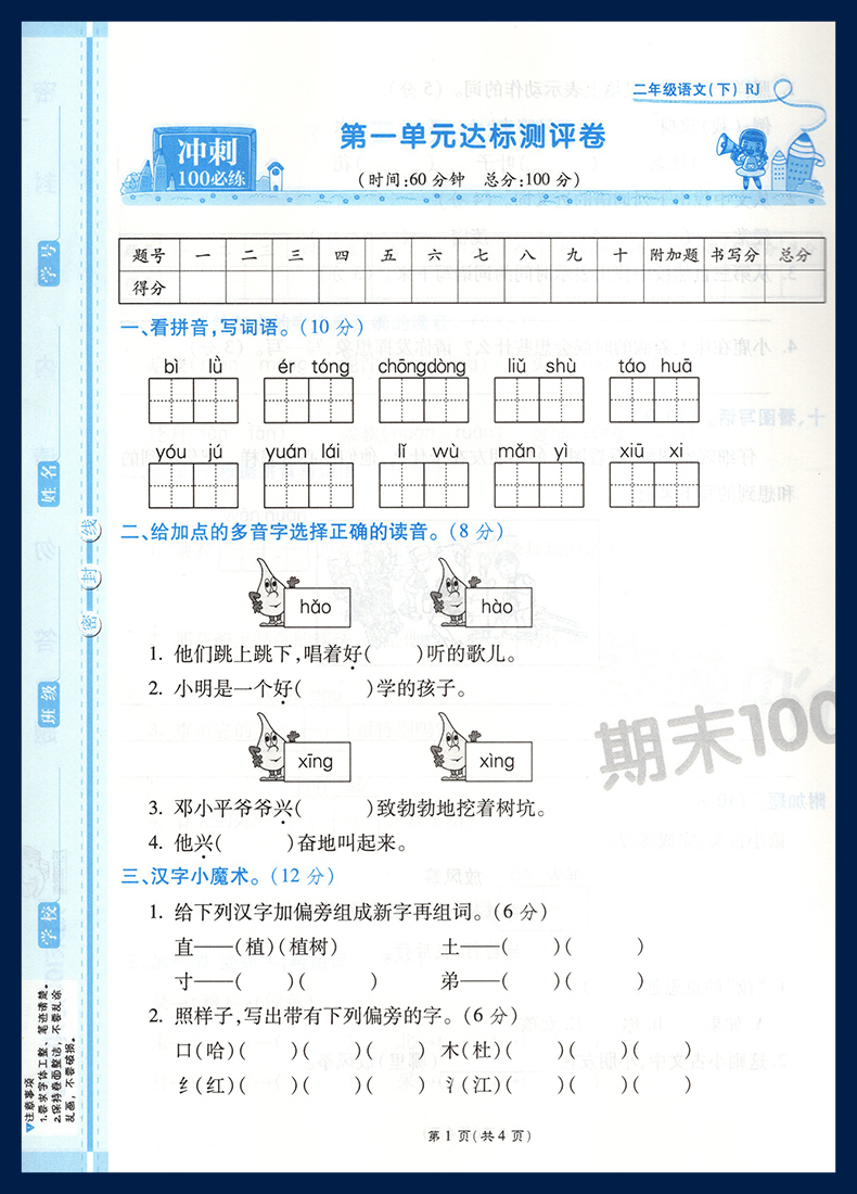 万向思维 期末100分冲刺卷 二年级下册语文人教版