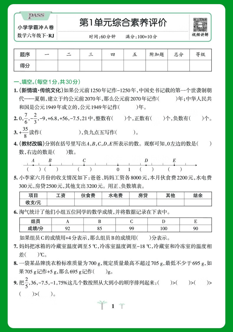 首页> 小学教辅> 六年级> 数学> 小学学霸冲A卷 六年级数学下册 人教版