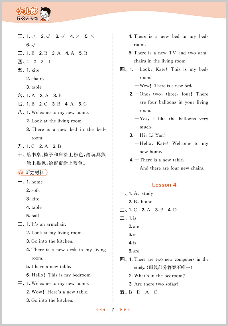 首页> 小学教辅> 四年级> 英语> 五三天天练 小学英语四年级下册 JT人教版