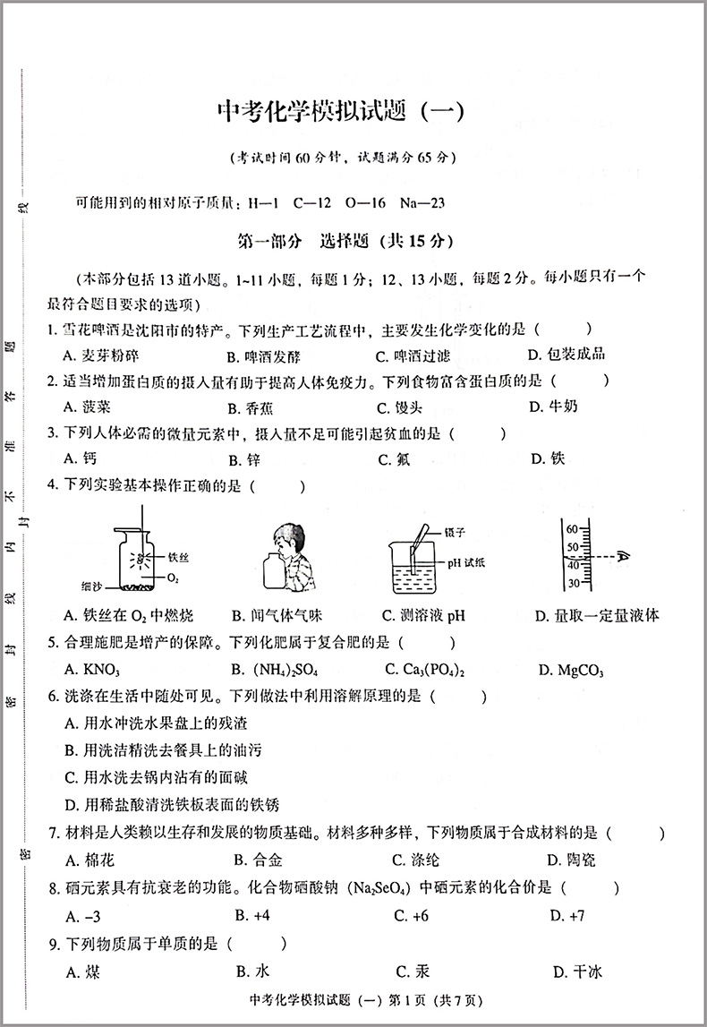 首页> 初中教辅> 中考> 化学> 2023中考必备 中考夺标最新化学模拟试题(辽宁专版)