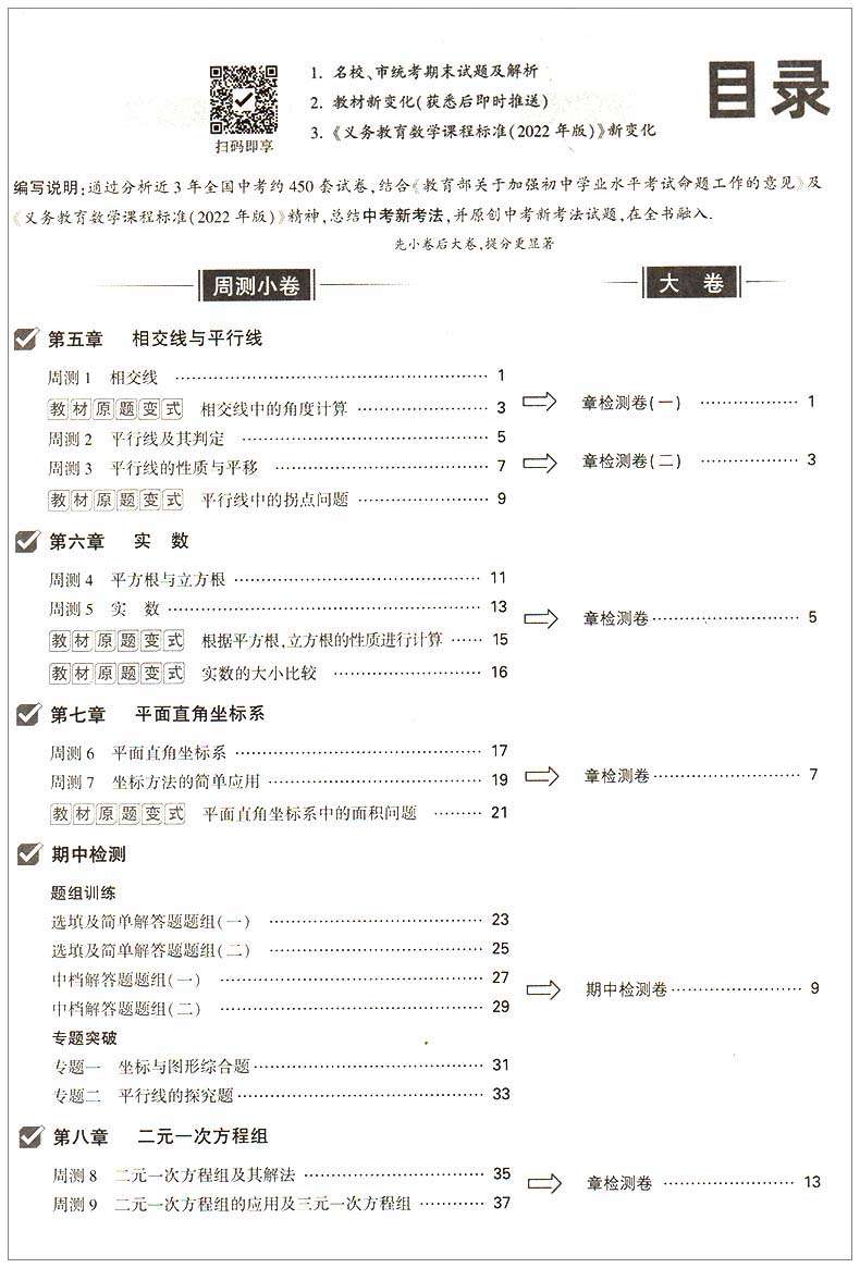 2023版 万唯中考大小卷 初中七年级下册 数学