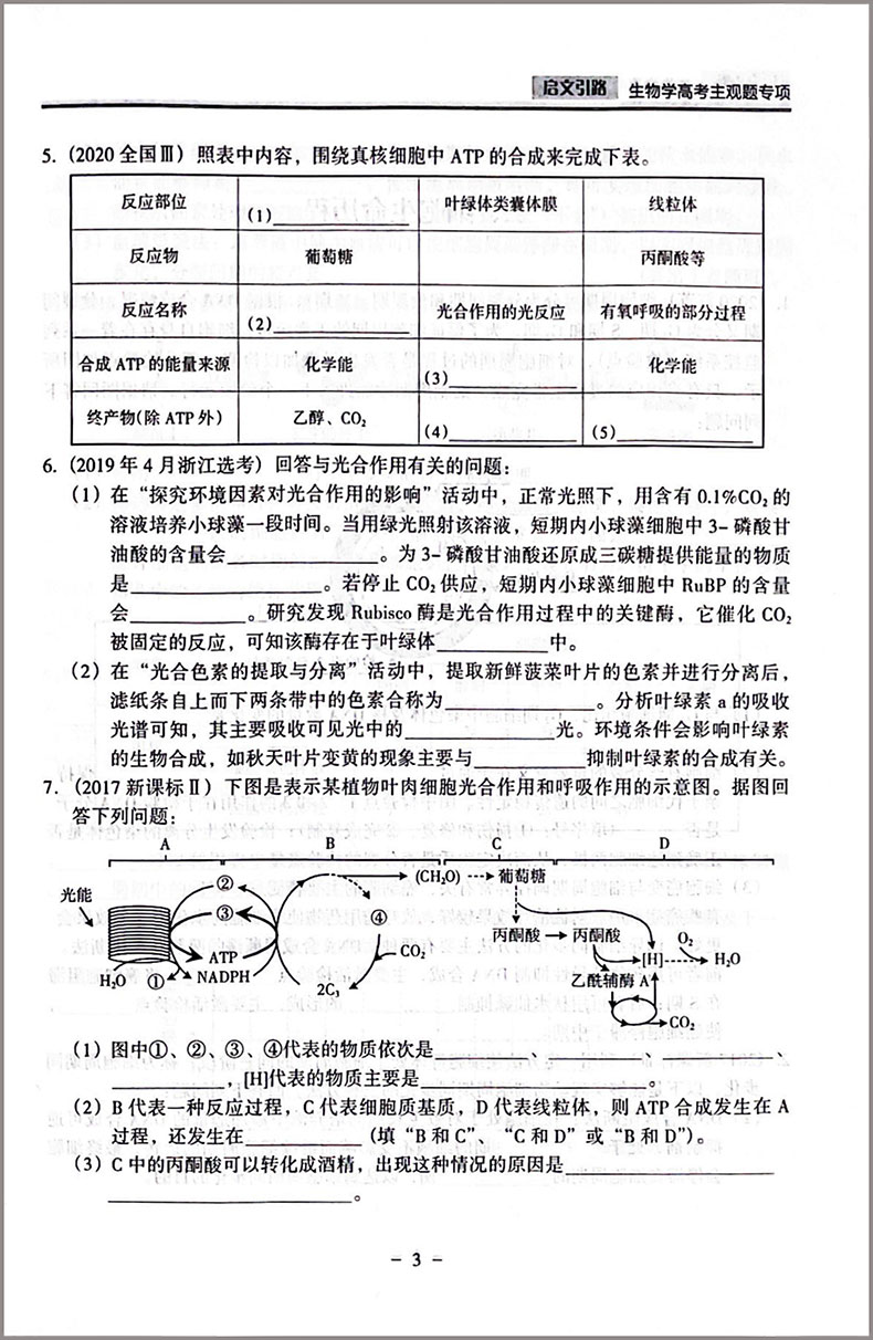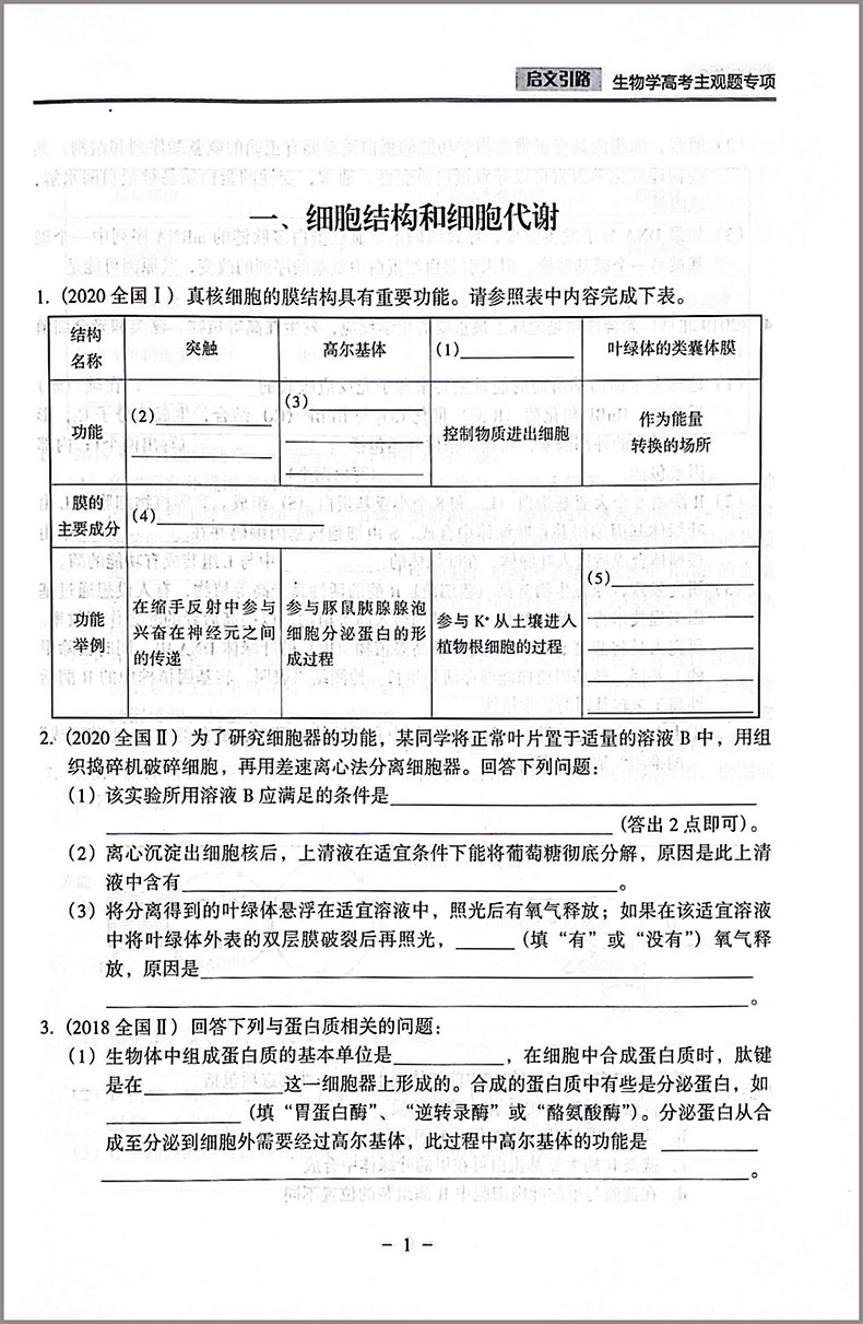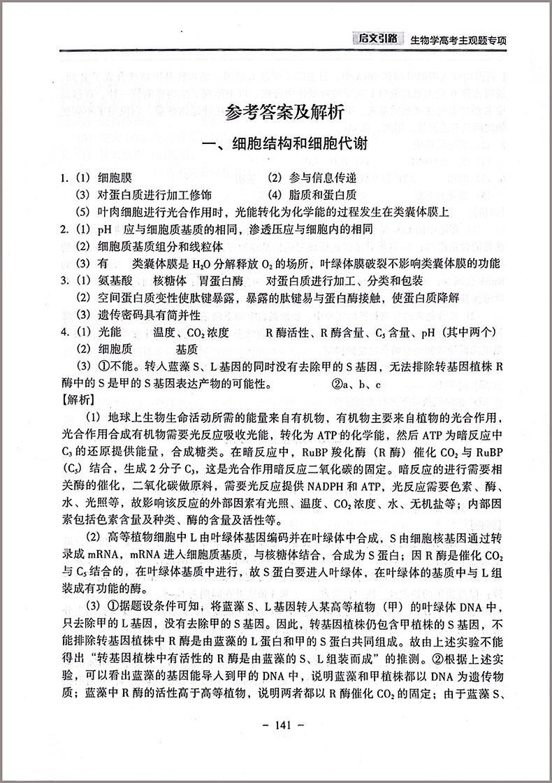 启文引路生物学高考主观题专项