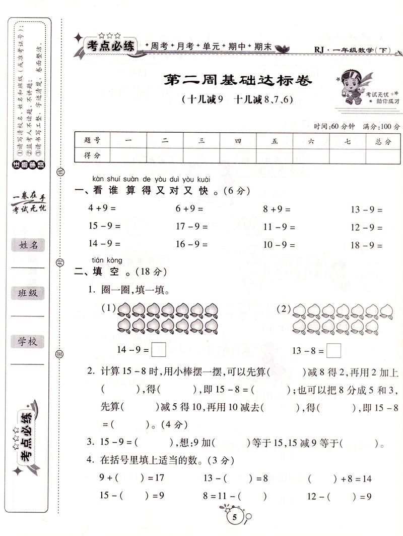 首页> 小学教辅> 一年级> 数学> 考点必练精编卷一年级数学下册 人教版