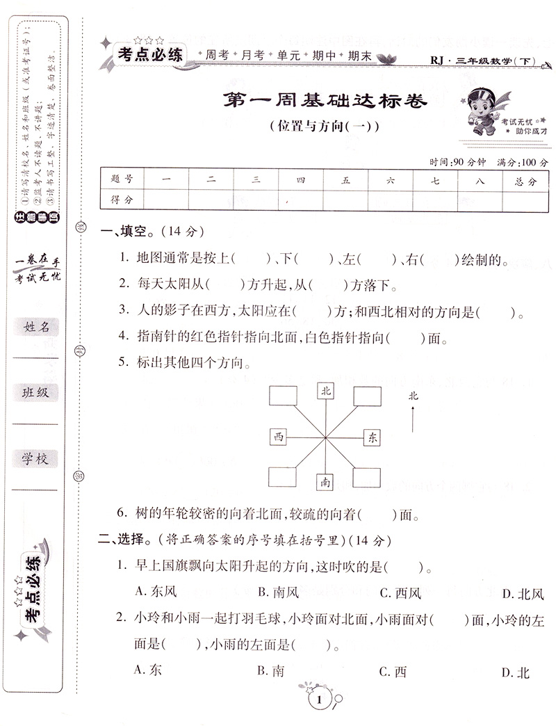 考点必练精编卷三年级数学下册 人教版