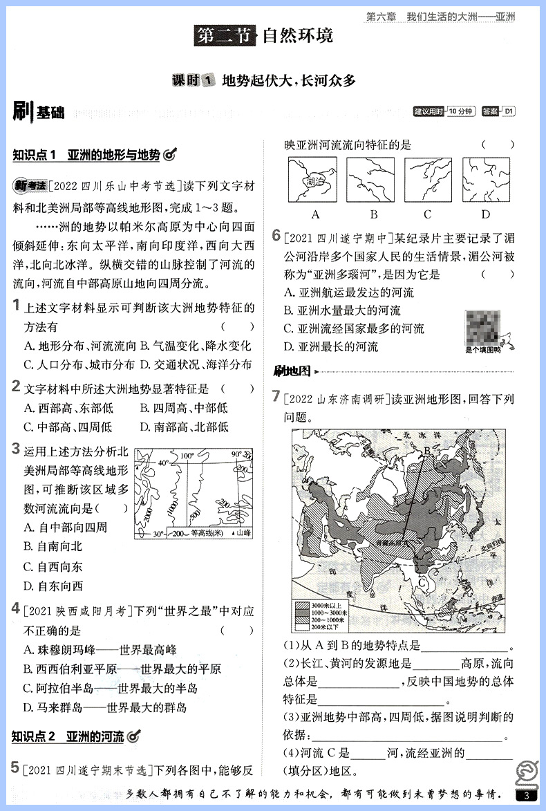 首页> 初中教辅> 七年级> 地理> 初中必刷题 七年级下册 地理 人教版