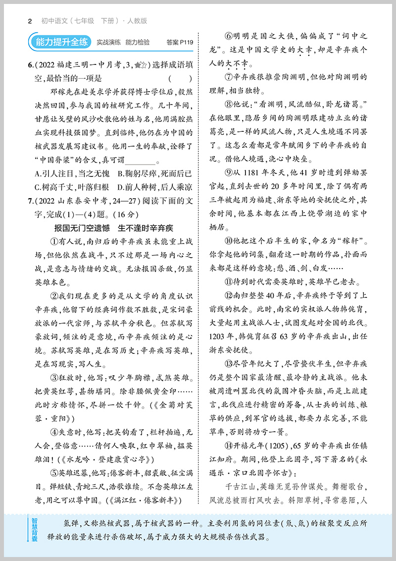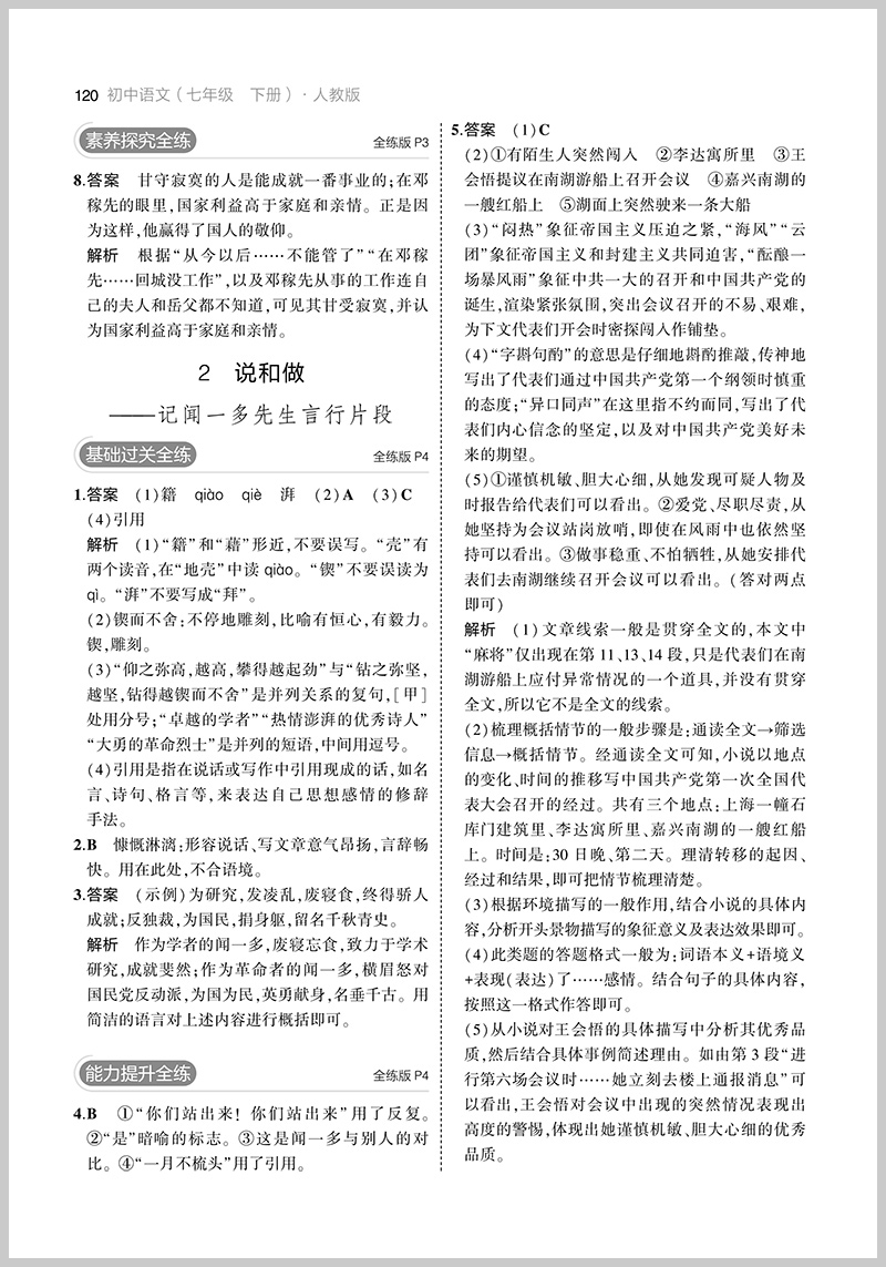 2023版 五年中考三年模拟 初中语文七年级下册 人教版
