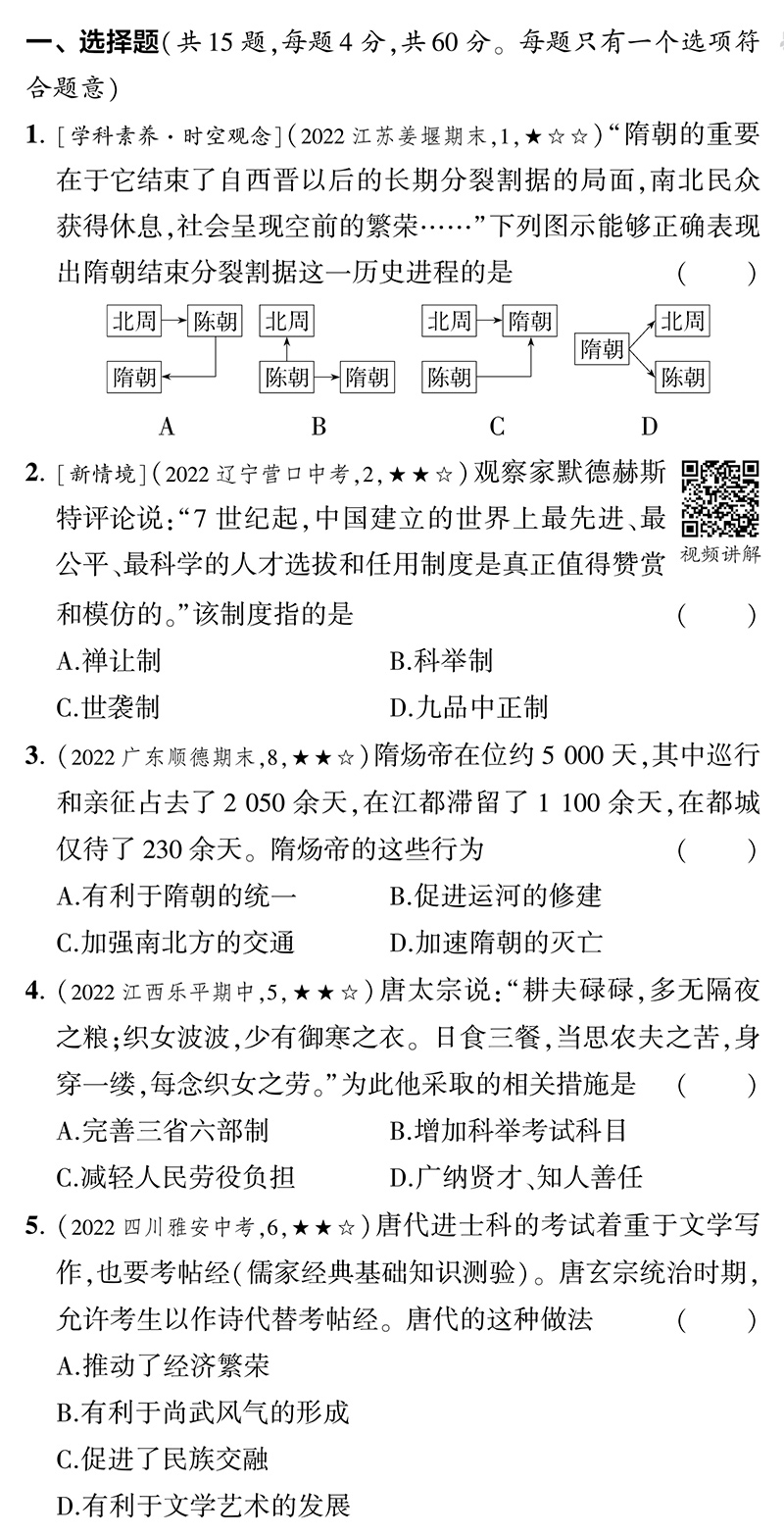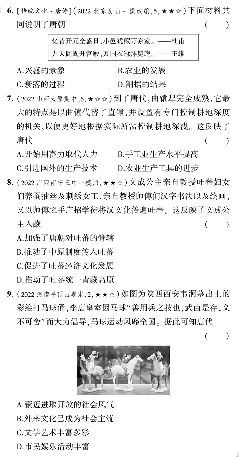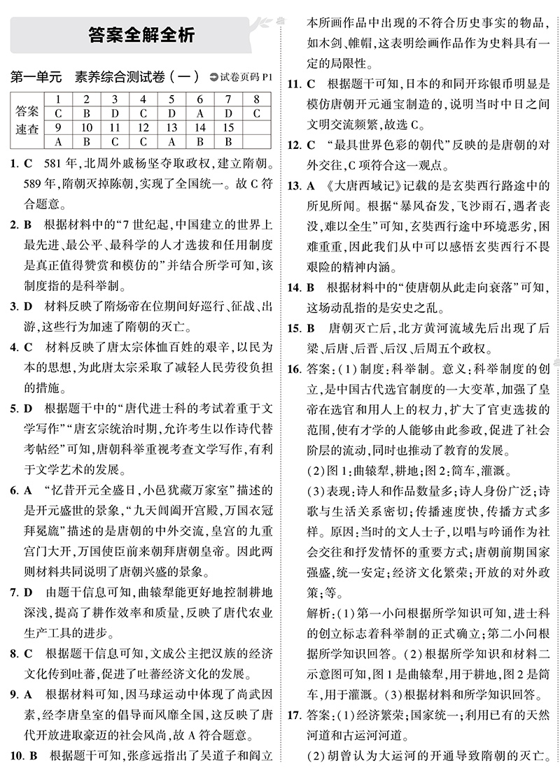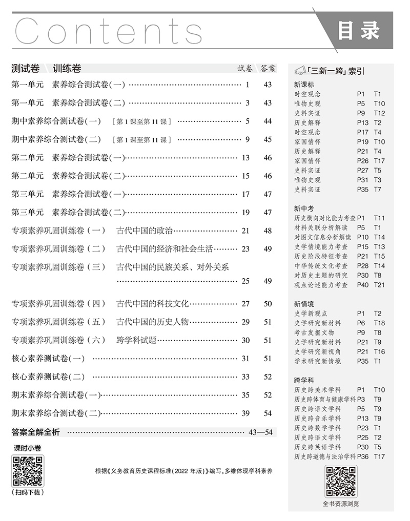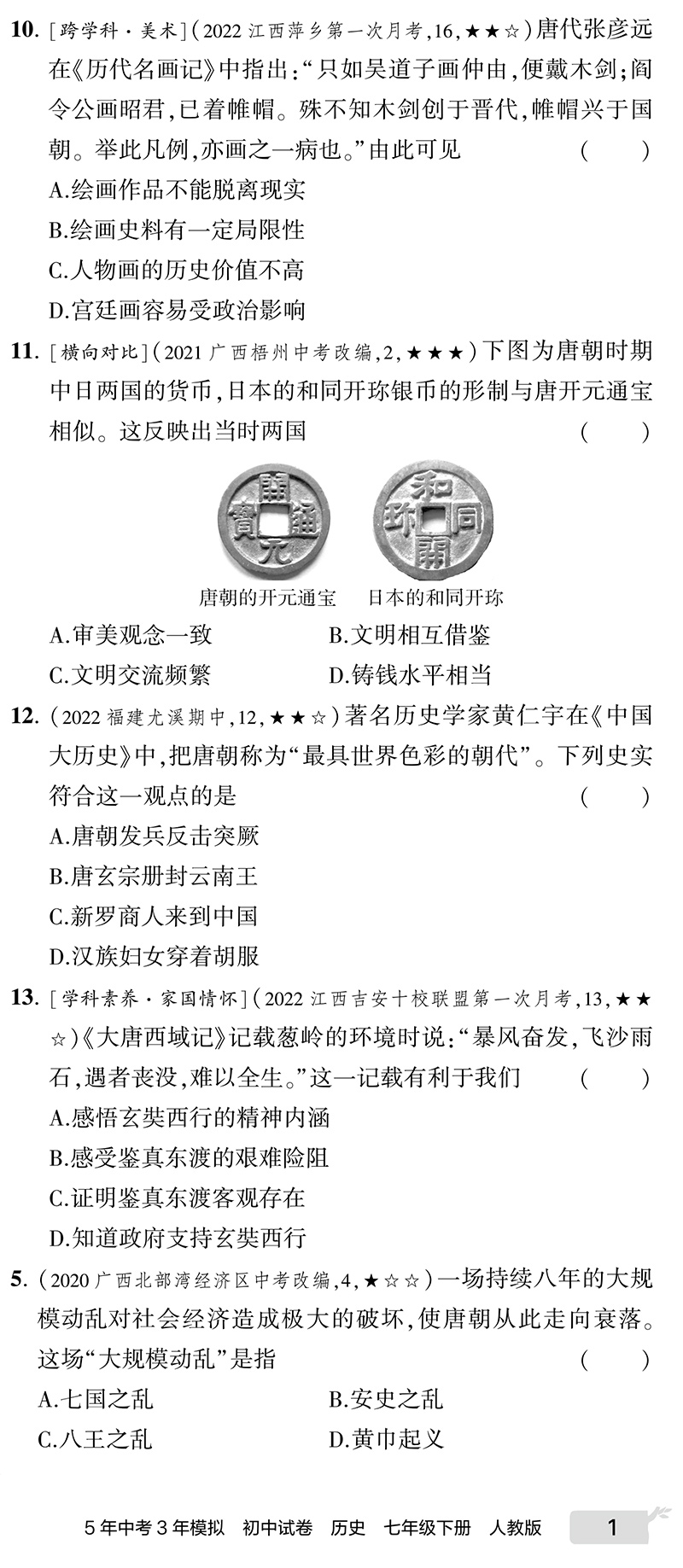 2023版 五年中考三年模拟 七年级下册 历史试卷 人教版