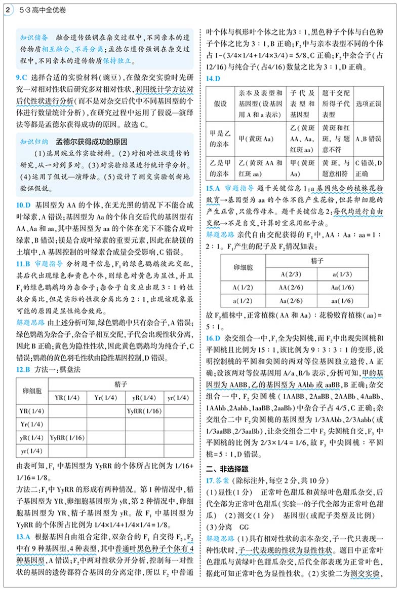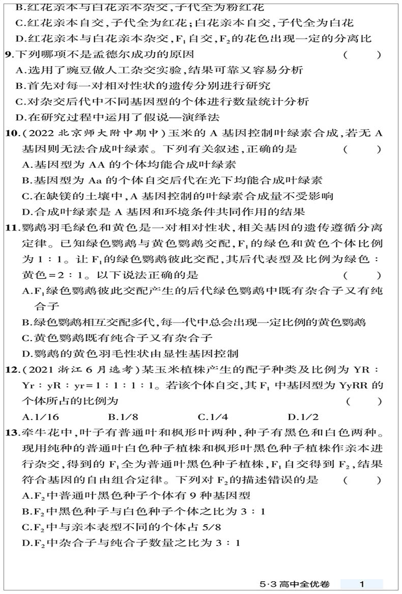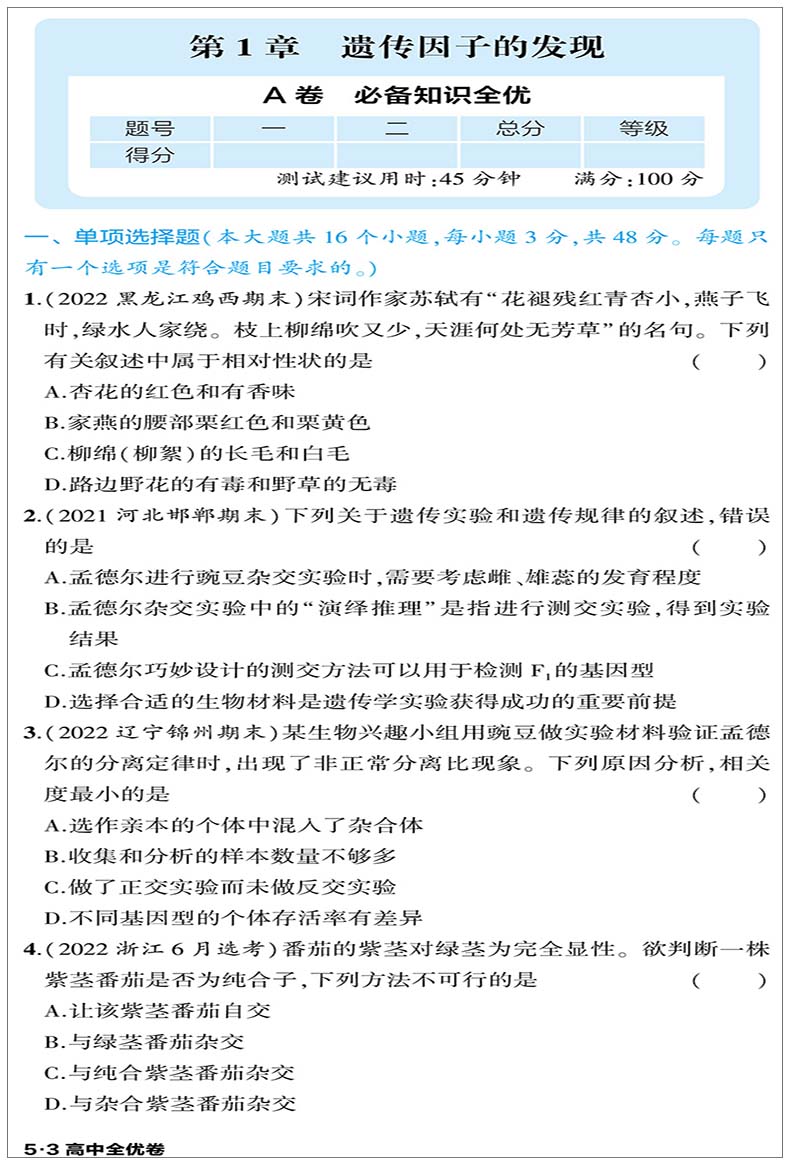2023新教材 53高中全优卷 生物学必修2遗传与进化人教版RJ