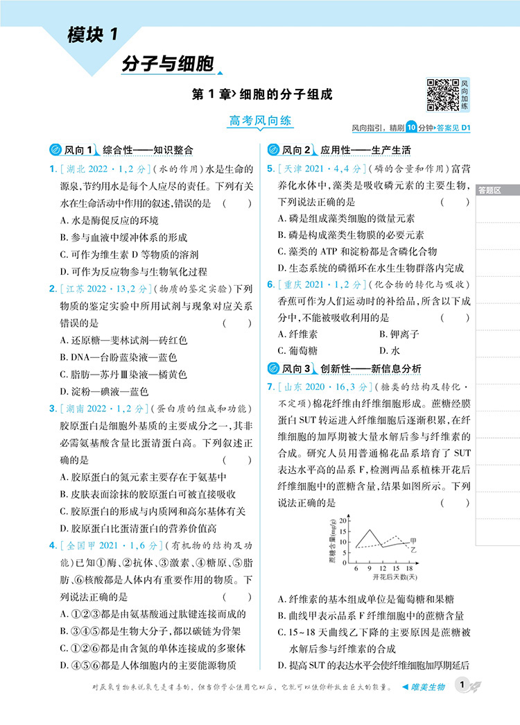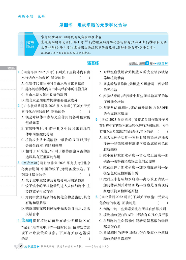 高考必刷小题强基版生物(不定项版) 新教材版2024新高考版
