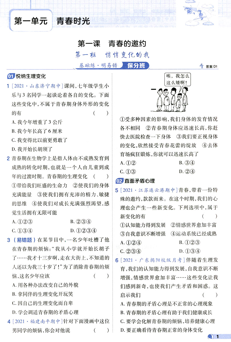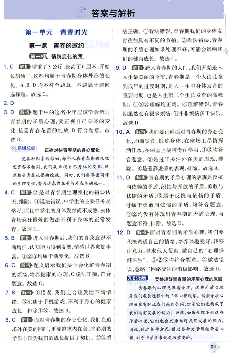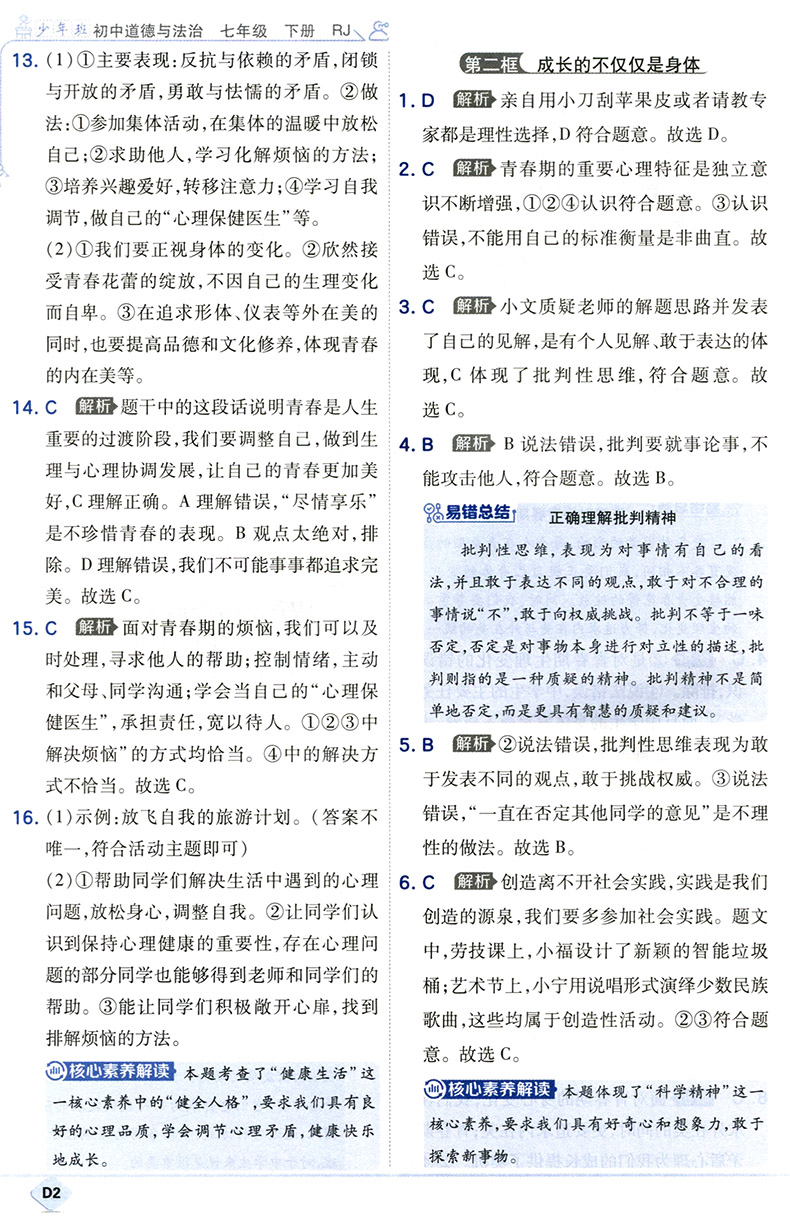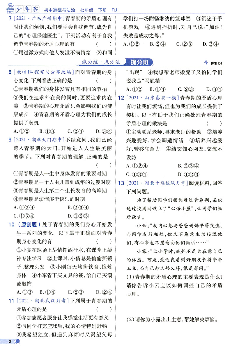 2023春 万向思维 少年班 七年级下册 道德与法治 人教版