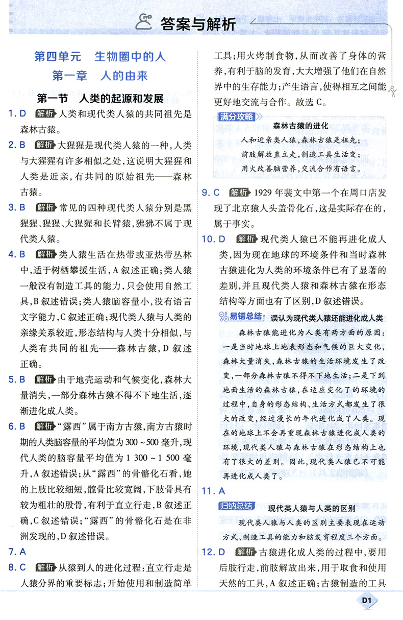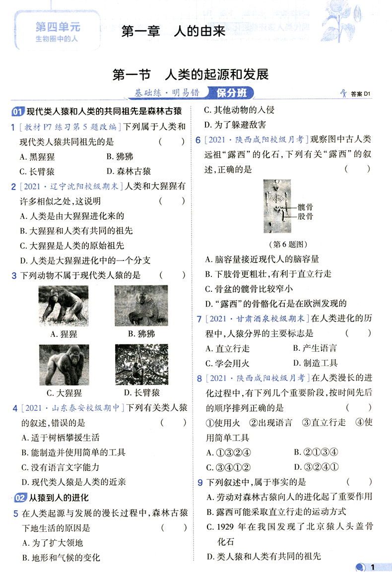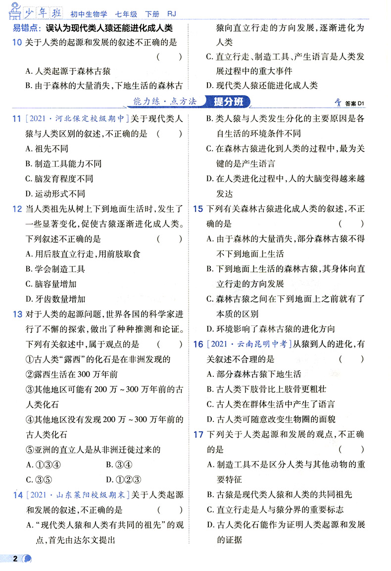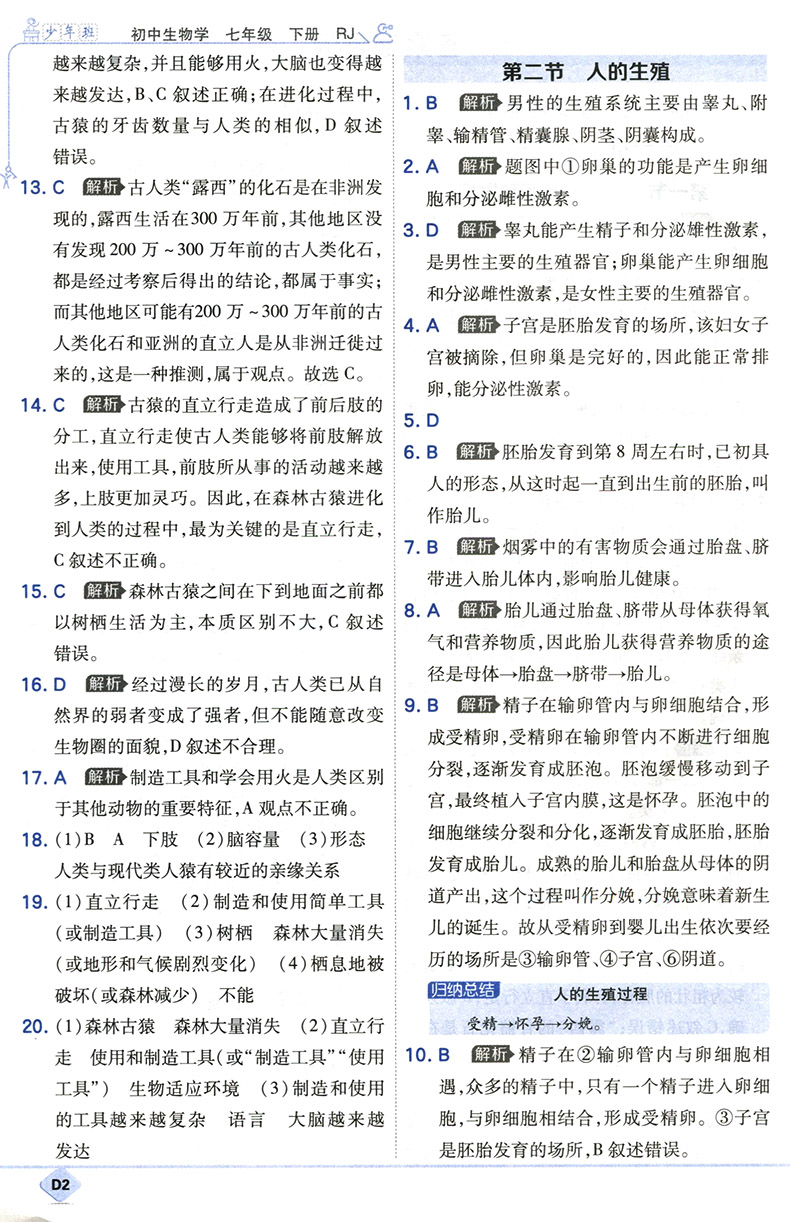 2023春 万向思维 少年班 七年级下册 生物学 人教版