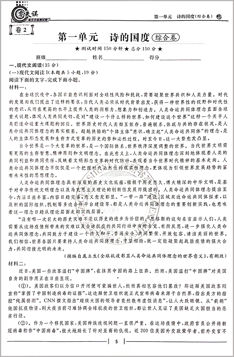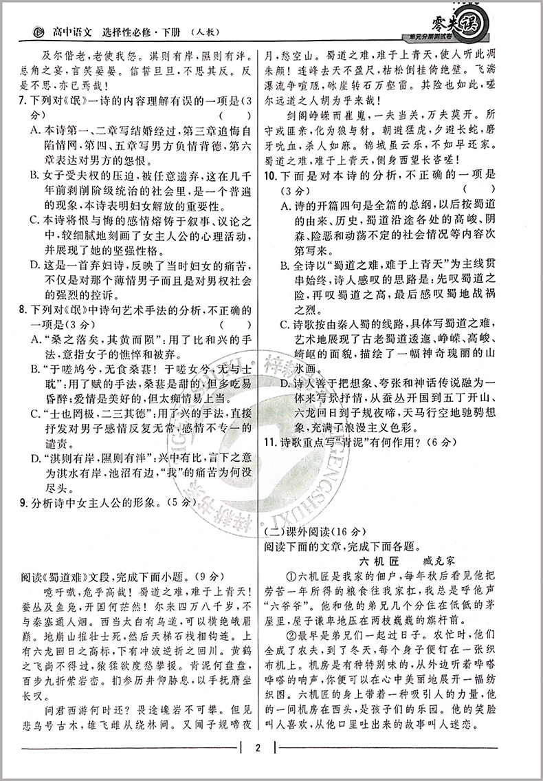 首页> 高中教辅> 高二年级> 语文> 零失误单元分层测试卷高中语文选择性必修下册 人教版 高二