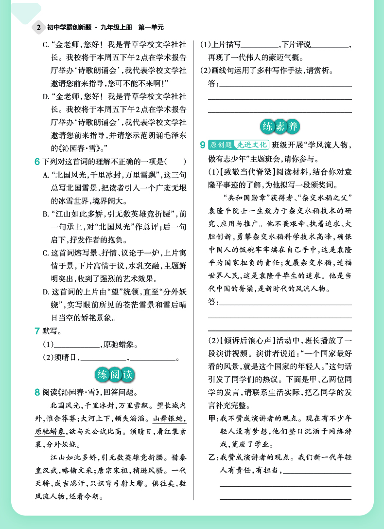初中学霸创新题 语文九年级全 人教版 绿卡图书