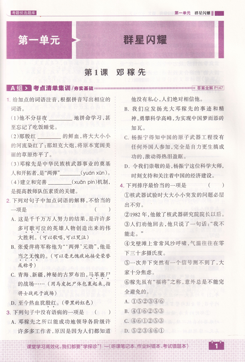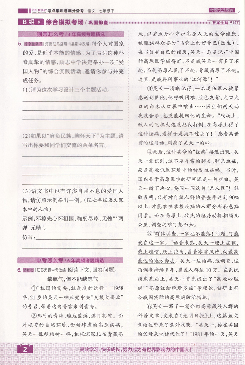 考点集训与满分备考七年级 语文下册 人教版 新全优